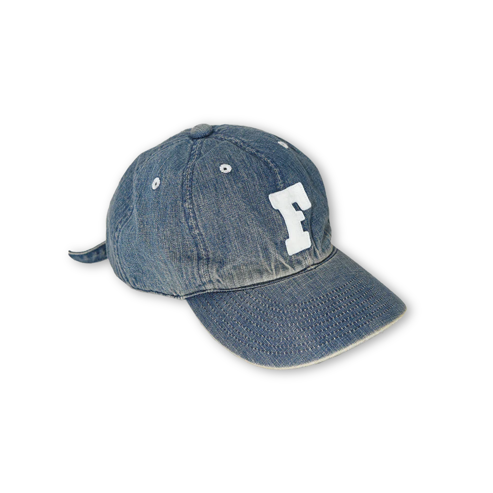 full count 6Panel Denim Baseball Cap 'F' Patch Vintage Wash