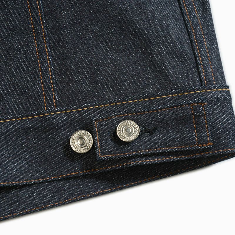 The Deluxeware DX4016 [THIRD MODEL JACKET] is crafted using 16 oz. Japanese denim, woven on an old-fashioned shuttle loom in Ibara City. This original denim has strong tension and elasticity, using two distinct American cotton yarns - No. 6 dark blue indigo warp and No. 7 Kinari weft. Those who value a beautiful patina will appreciate this denim's clear color fading over time.