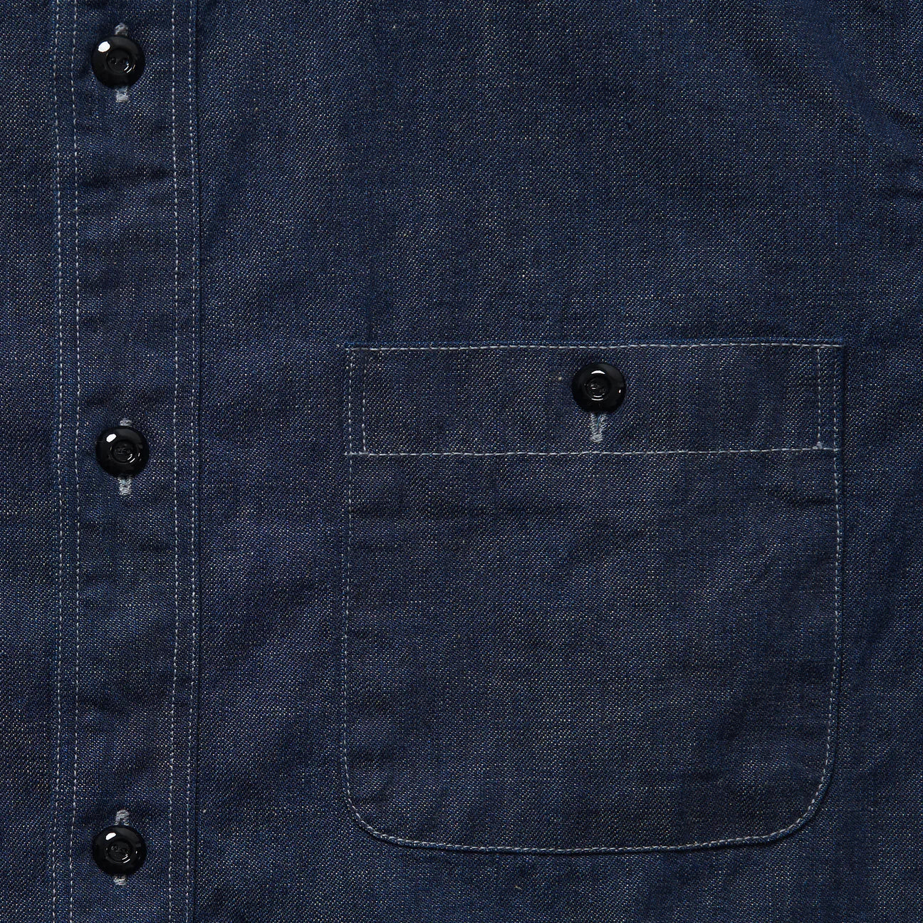 This chambray shirt offers a classic and versatile fit, not too loose or too tight, making it a popular choice among Japanese body types. It's crafted from an 8oz Zimbabwe cotton fabric with grey weft threads, reminiscent of the horizontal thread seen in 1930s USN items. High-count sewing threads are used, ensuring meticulous stitching and creating exquisite puckering and fading over time. Enjoy the intricate details and fading effects that come with this shirt.