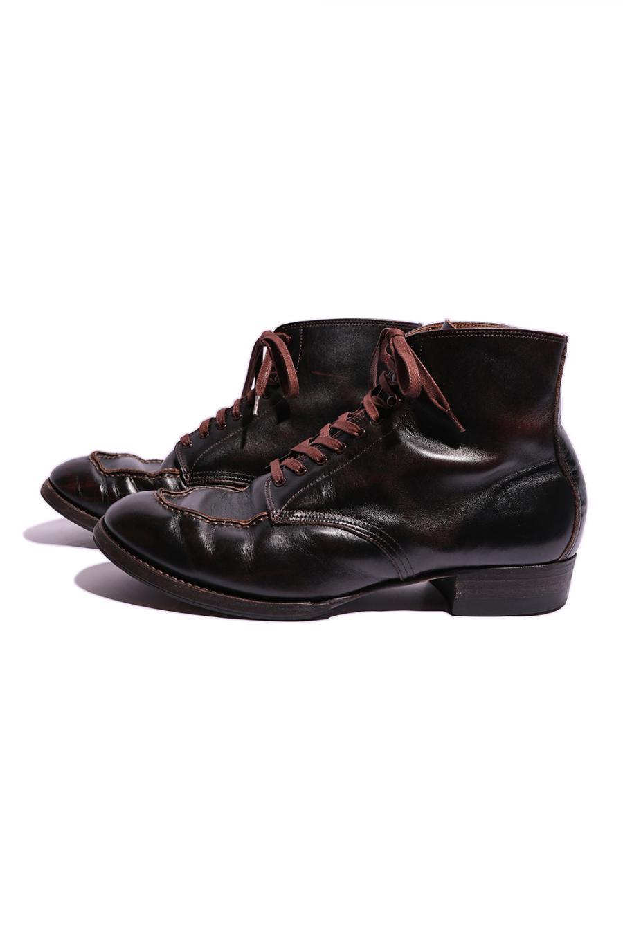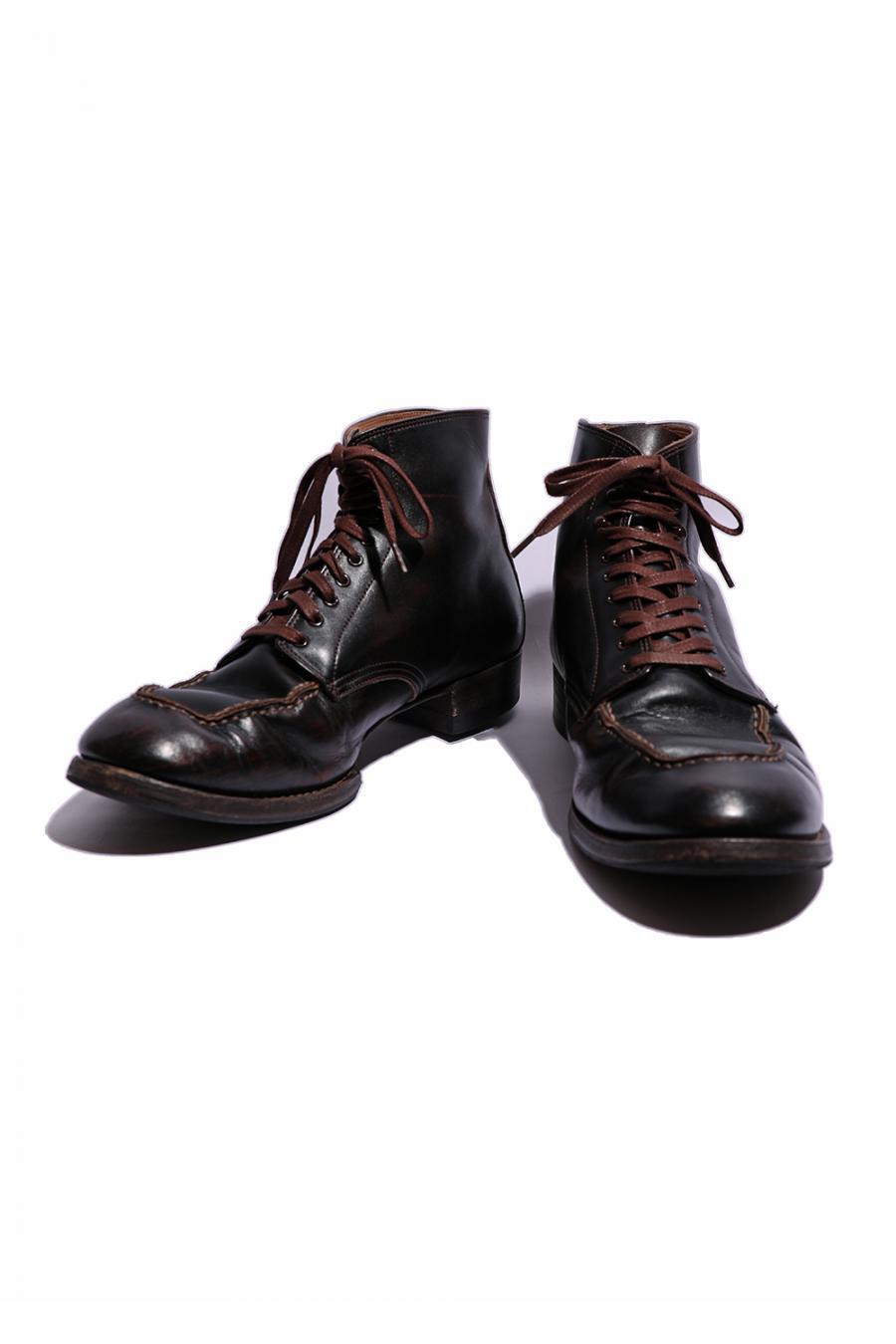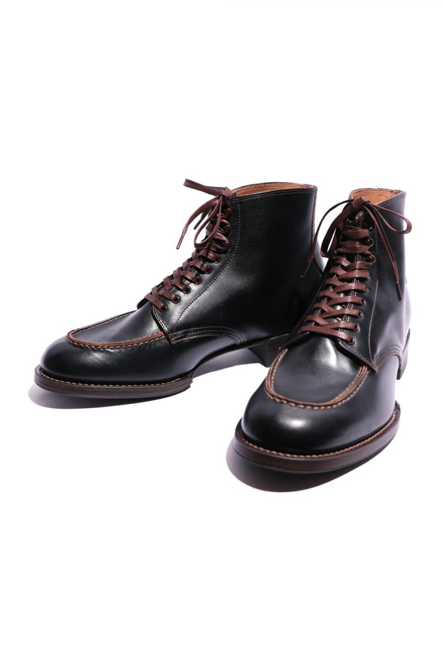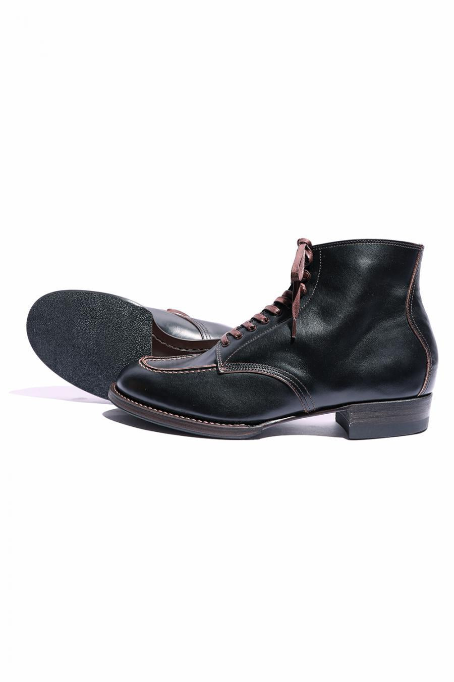 The taste of the times is especially included around the bottom. By using the Goodyear Welt method for the trampling part and the McKay method for the heel from the waist, the style of the spade type sole with the waist narrowed down and beveled (*) is reproduced. A combination of a well-curved leather sole and a slightly pitched heel (**) is a detail often seen at the time, especially in European shoes. With a light single leather sole, the boots themselves are surprisingly light.