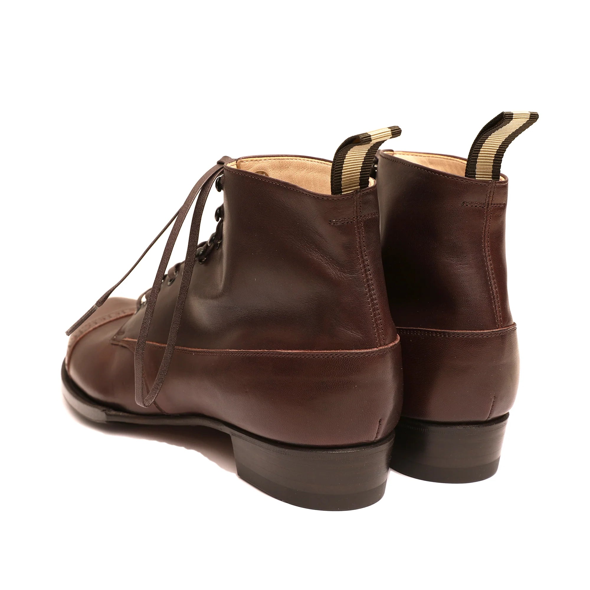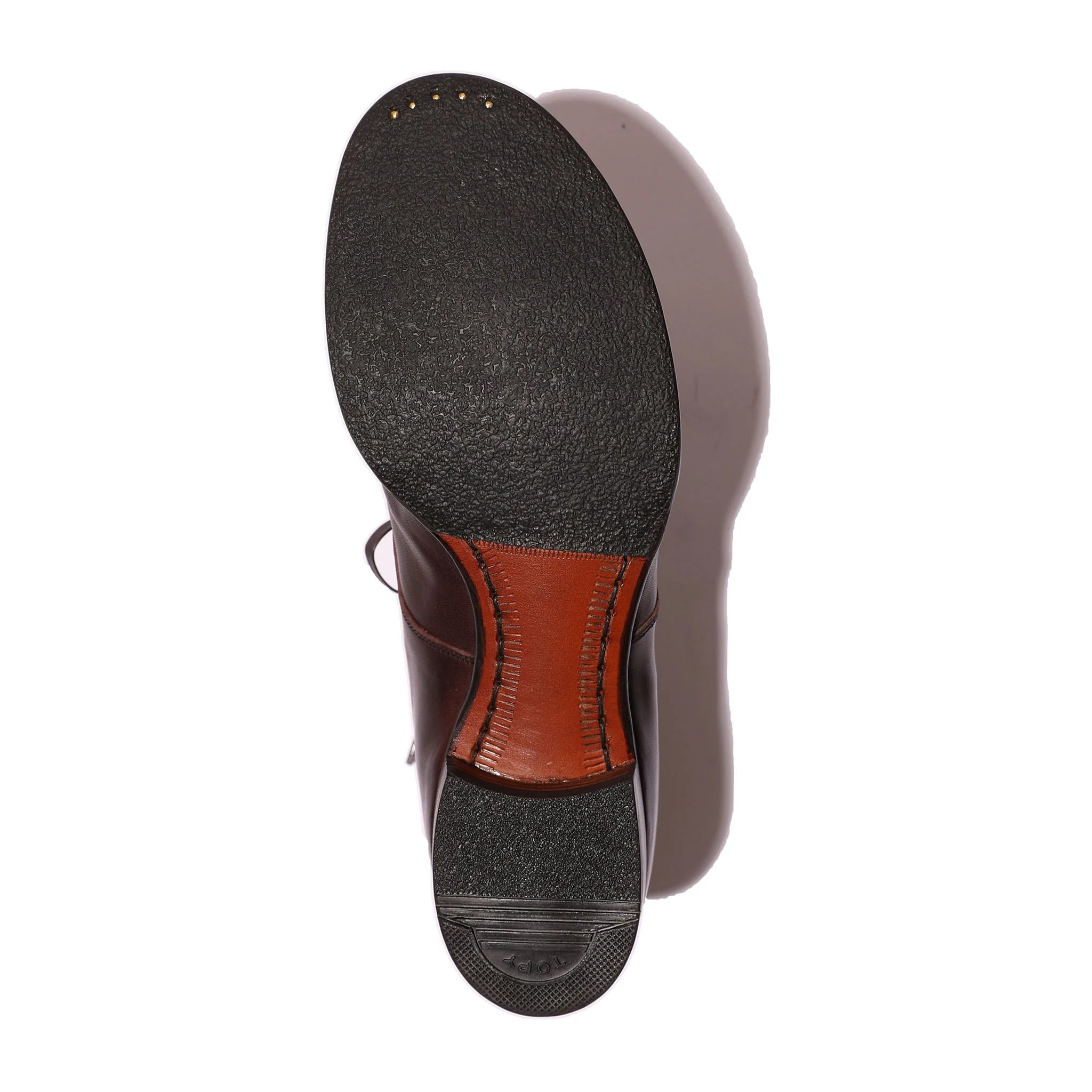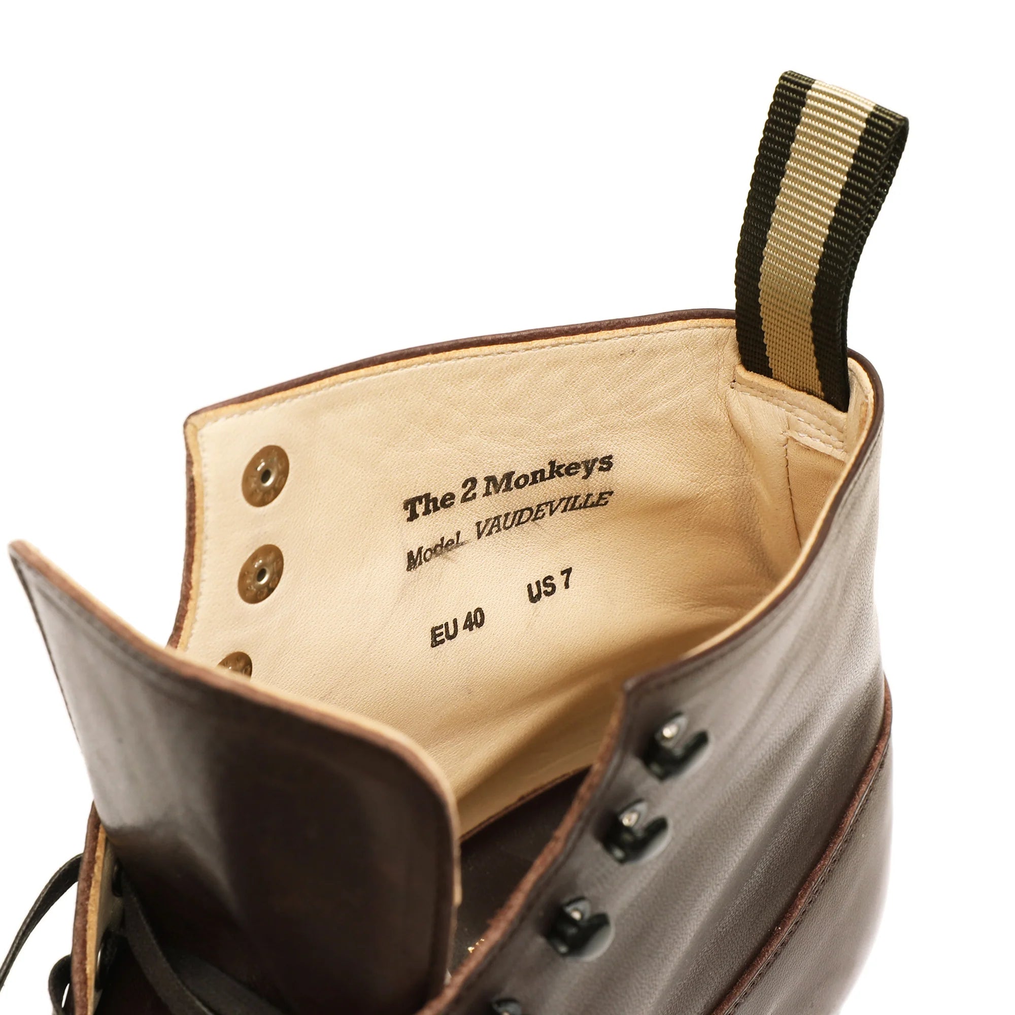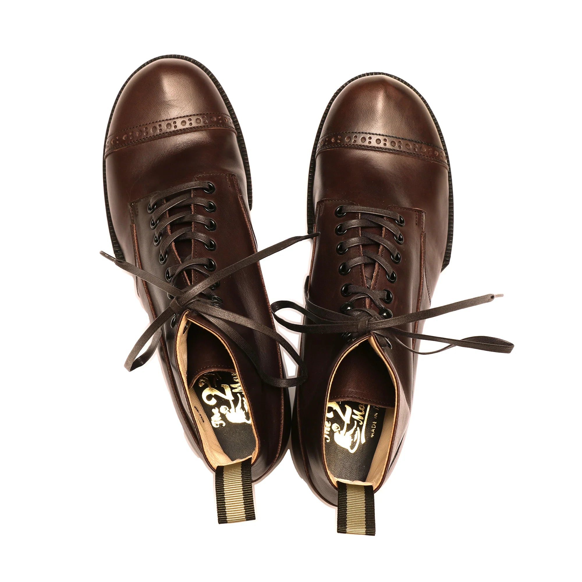 Inspired by the popular form of entertainment in early 20th century America, the JELADO The 2 Monkeys VAUDEVILLE boots feature a unique high toe and two-part topstitching for a cap-toe wingtip design. Made with natural horsehide leather, these boots are not only stylish but also incredibly lightweight and comfortable. Available in black and oak brown.