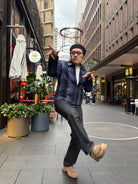 The JELADO Wooster Sports Jacket revives a classic 1930s design with meticulous attention to historical detail. Crafted from yarn dyed in a faded navy hue to replicate period colors, the fabric blends the 7th thickest merino wool with coarse tweed-type raw hair, creating a textured, robust material. The addition of shrinking velvet enhances the fabric’s stiffness and tactile contrast. Tea core horsehide accents on the elbow pads, cuffs, and pockets provide durable reinforcement and authentic vintage appeal, making this jacket a distinguished piece for collectors and enthusiasts of refined heritage outerwear.