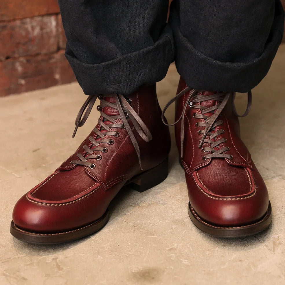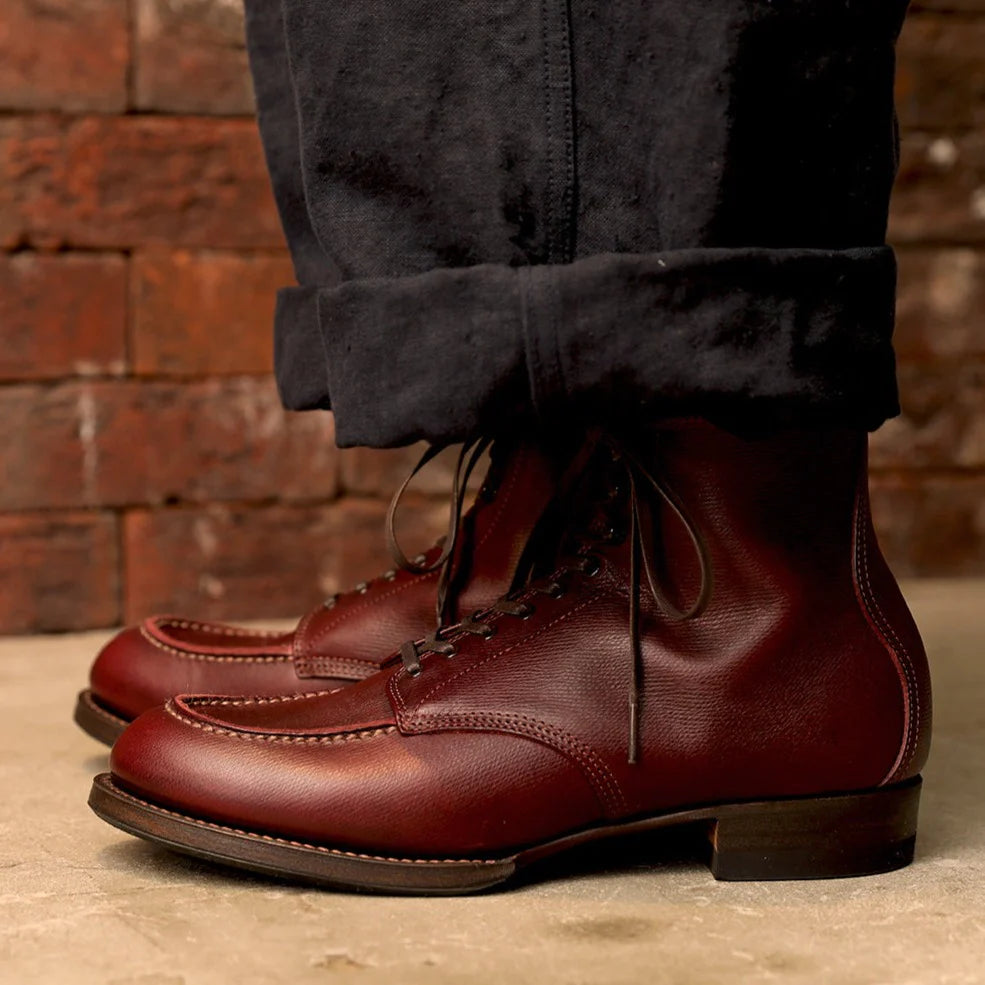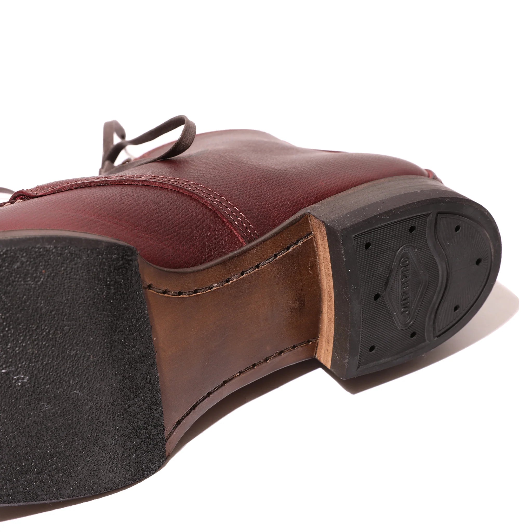 This baketta leather is finished in a deep colour with plenty of oil. The finely embossed shibe feels like it is also connected to the hand-kneaded leather of the old days. Because it is a pull-up (the part where the leather is pressed or pulled is brightened by the oil inside moving), so if you wear boots and wrinkles and scratches, the shadow of the colour will emerge and the expression will deepen. It's a leather that I'm looking forward to ageing.