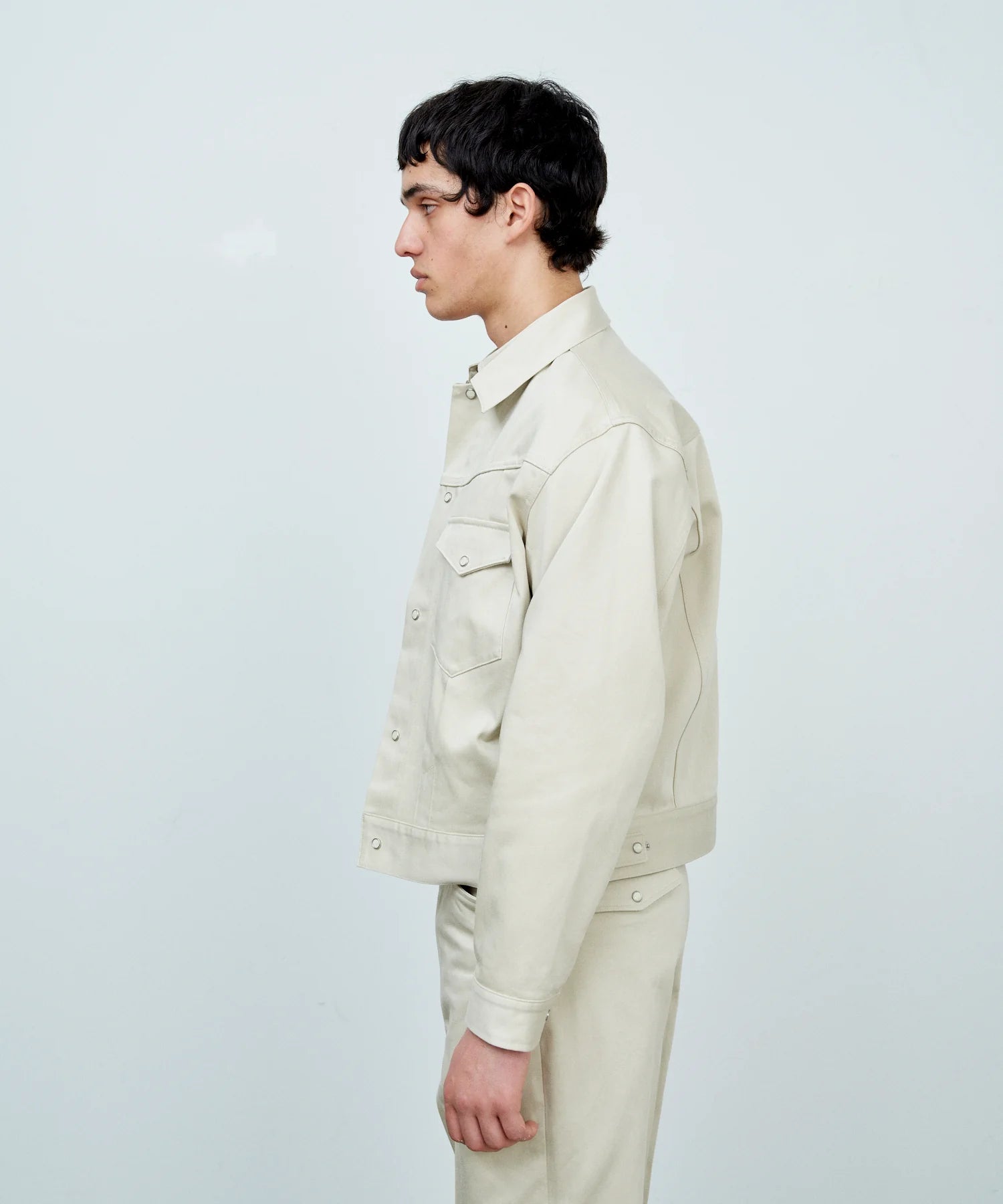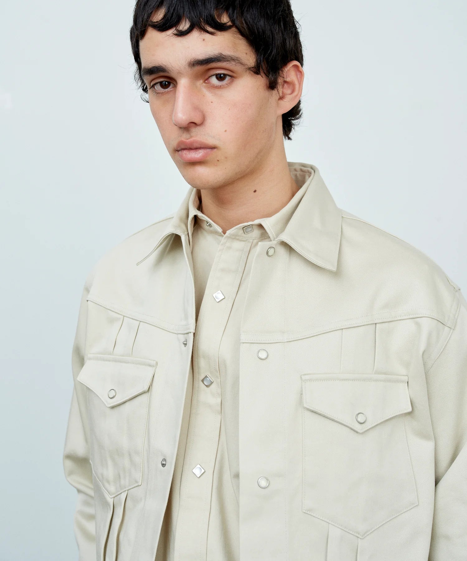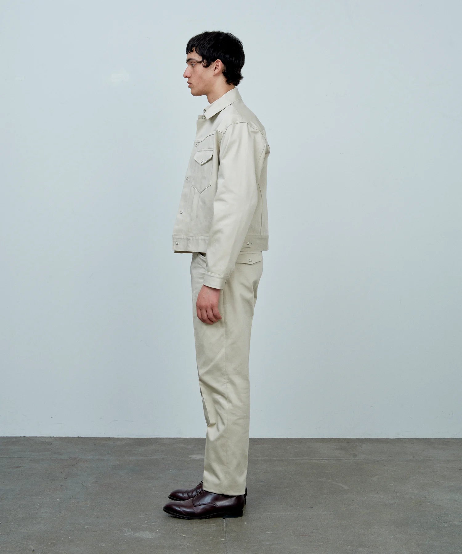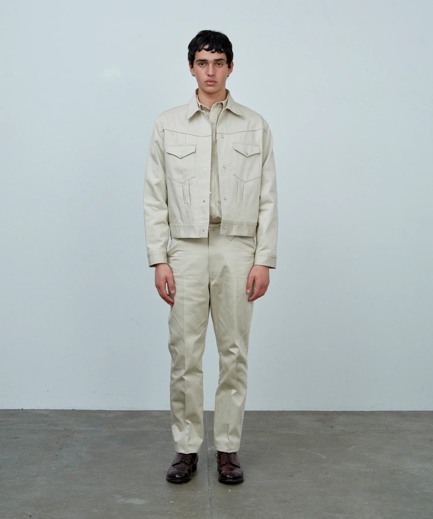 This piece was reconstructed by ANATOMICA based on a cotton satin western jacket from the 1950s, featuring a classic western yoke, snap buttons on the front, and a clean, sharp silhouette.