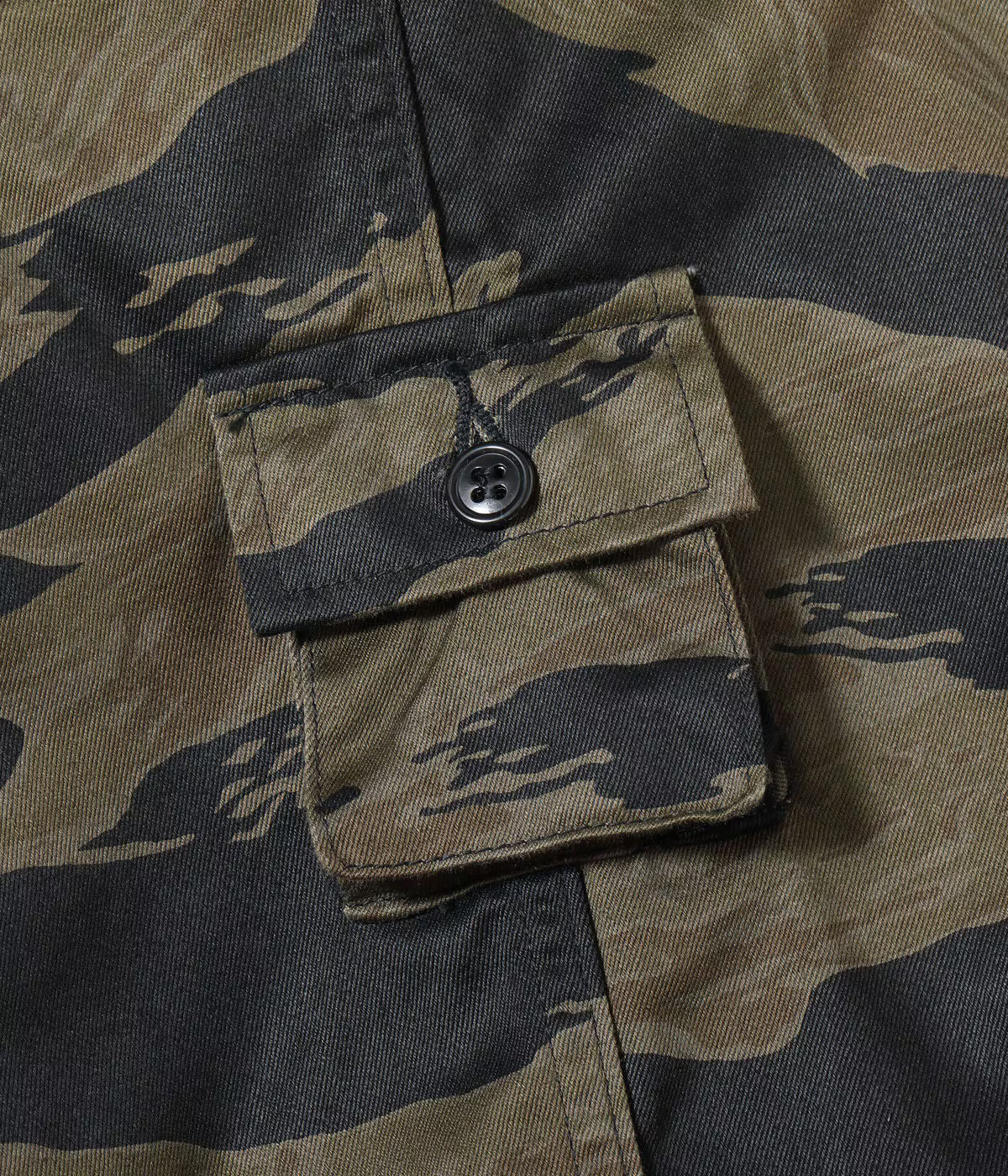 There actually exist jackets with the tiger stripe pattern from the Vietnam War era that have been over-dyed (dyed after production). Since tiger stripe camouflage was originally not government-issued, soldiers had relatively free rein in how they treated them. I want to enjoy the process where the tiger stripe pattern gradually emerges more vividly the more the jacket is worn and washed.