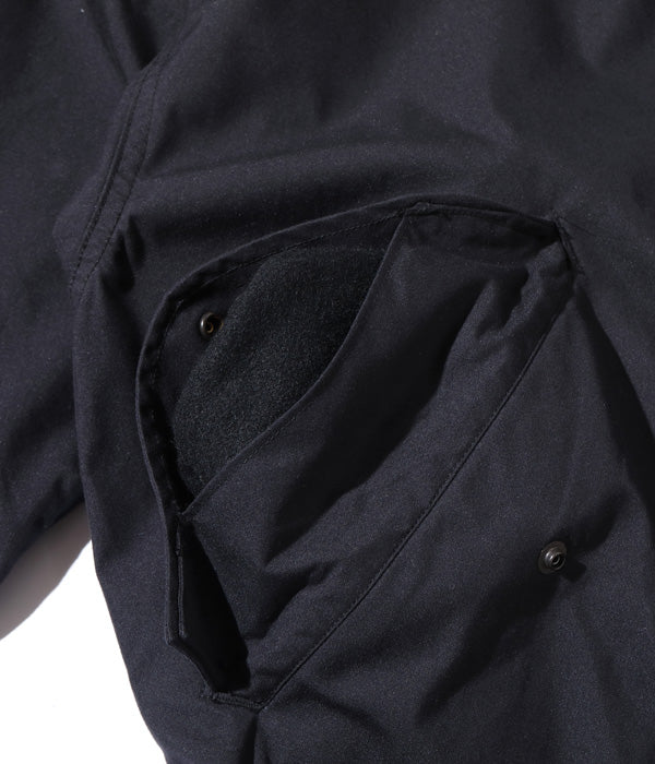 Black version of M-65 parka. The shell fabric is the same cotton/nylon fabric as the original O.D. jacket. It is an excellent lightweight yet durable material. The loose silhouette is ideal for today's town use.