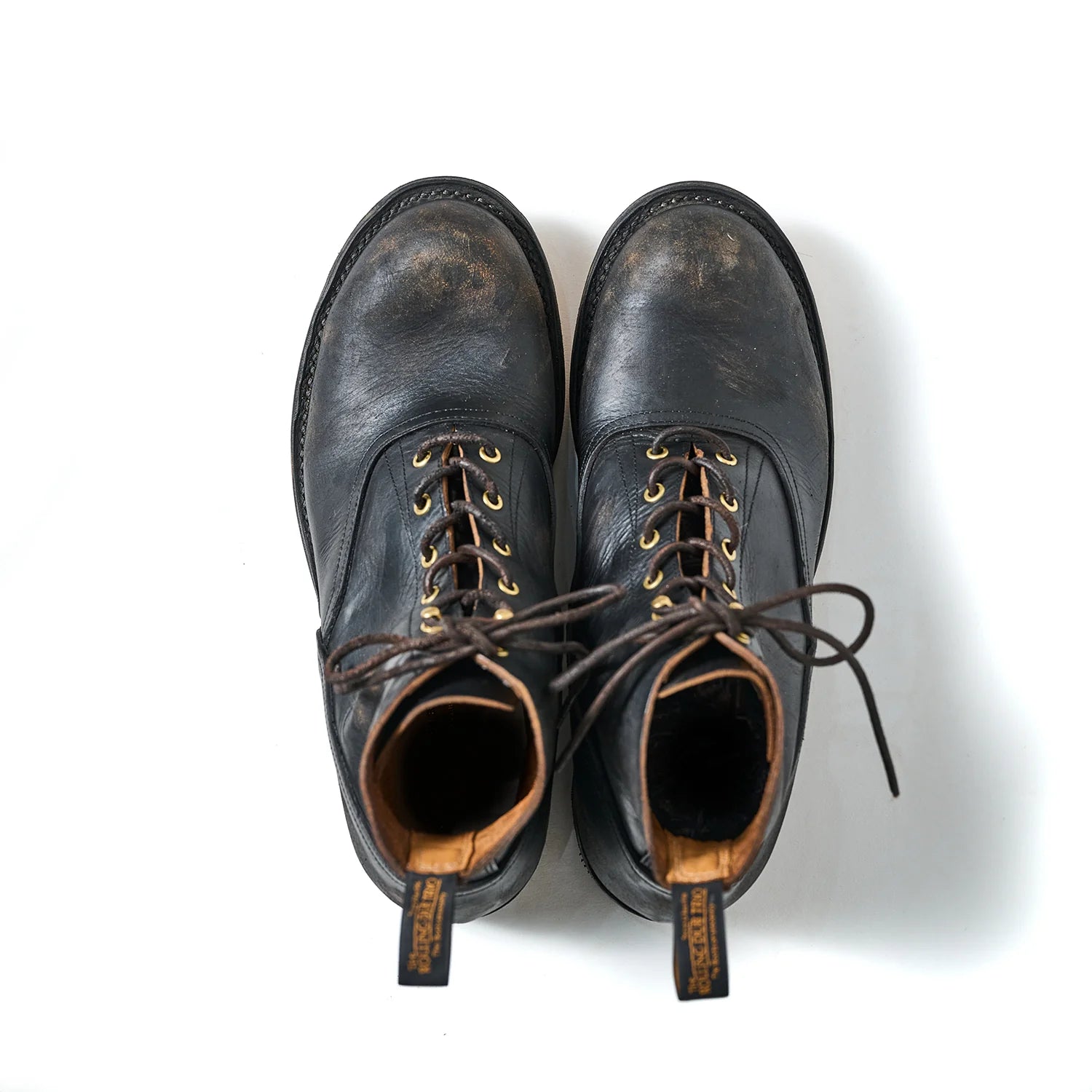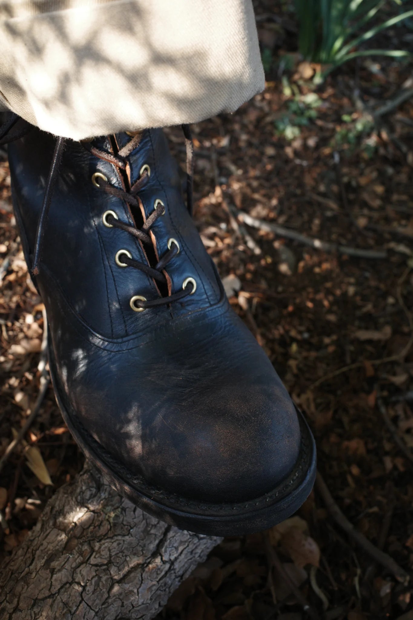 The elegance of an inner wing boot, thick leather, a curved toe, and an outer pocket heel counter.