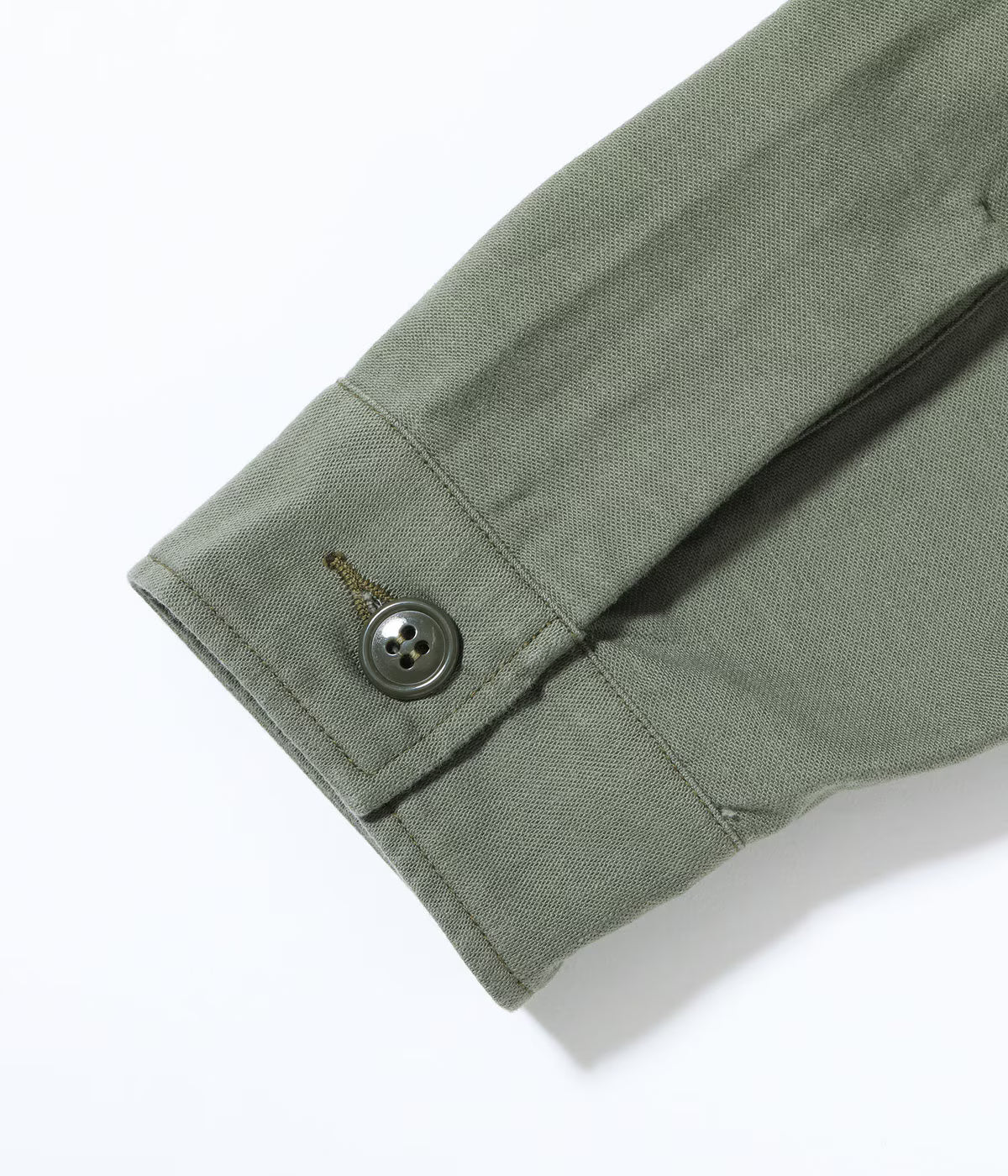 The OG-107 utility uniform represents a pivotal evolution in military workwear, born from the Korean War's demand for enhanced cold-weather functionality. This Buzz Rickson's reproduction captures the authentic design with thick cotton sateen construction in olive green, featuring dual chest pockets with protective flaps and a practical pen holder on the left side. The open-collar styling and tube sleeves without cuffs reflect the refined second-generation specifications that became standard issue. Originally developed to succeed the herringbone twill uniforms of the WWII era, the OG-107 established itself as the definitive utility shirt for decades. A historically significant piece that combines authentic military heritage with genuine workwear practicality.