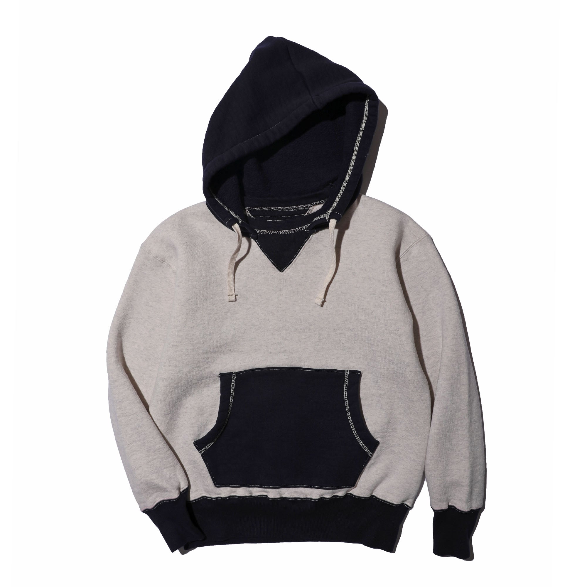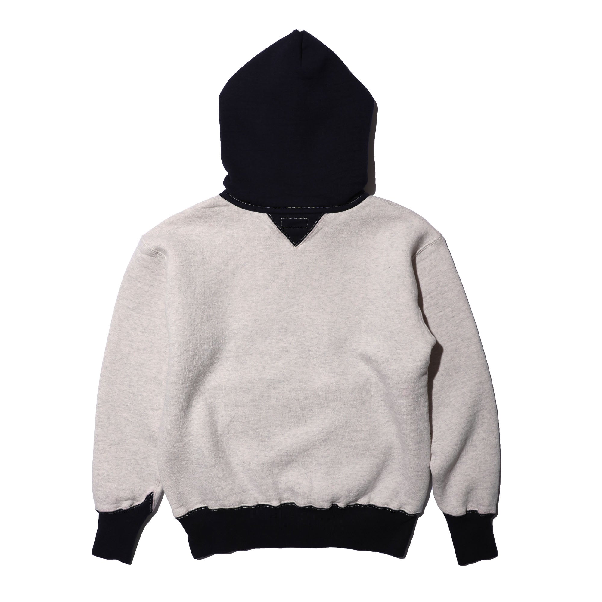 Introducing the COLIMBO Buzzard's Roost Sweat Parka -Two Tone, featuring heavy weight sweat fabric slowly knitted with a vintage-inspired process. This attached hoodie design includes a triangular gusset for comfort and reinforcement. With a kangaroo pocket and unique ribbed sleeve design, this parka is washed for a noticeable fleece lining and minimal shrinkage. Available in a range of sizes.