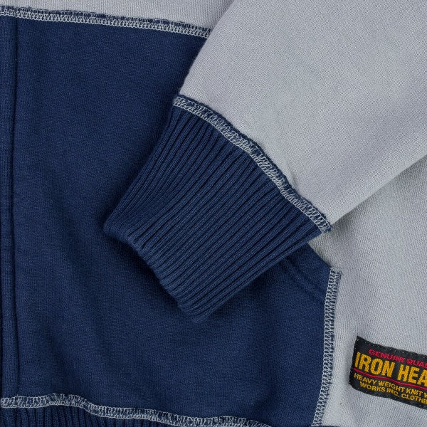Iron heart 14oz Ultra Heavyweight Loopwheel Cotton Zip Up Hoodie - Grey/Navy 30% off