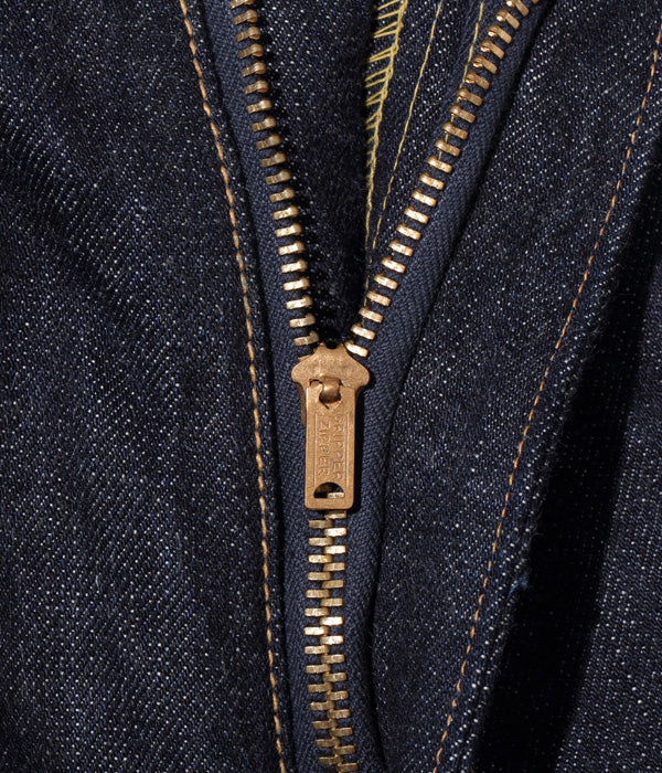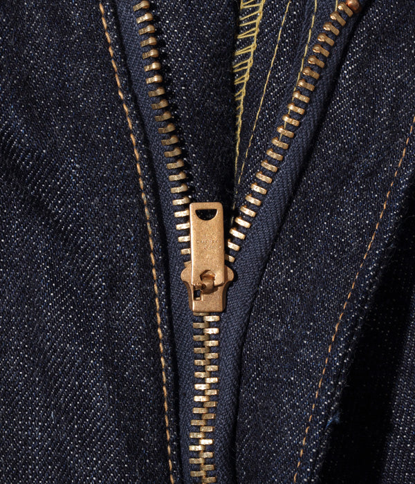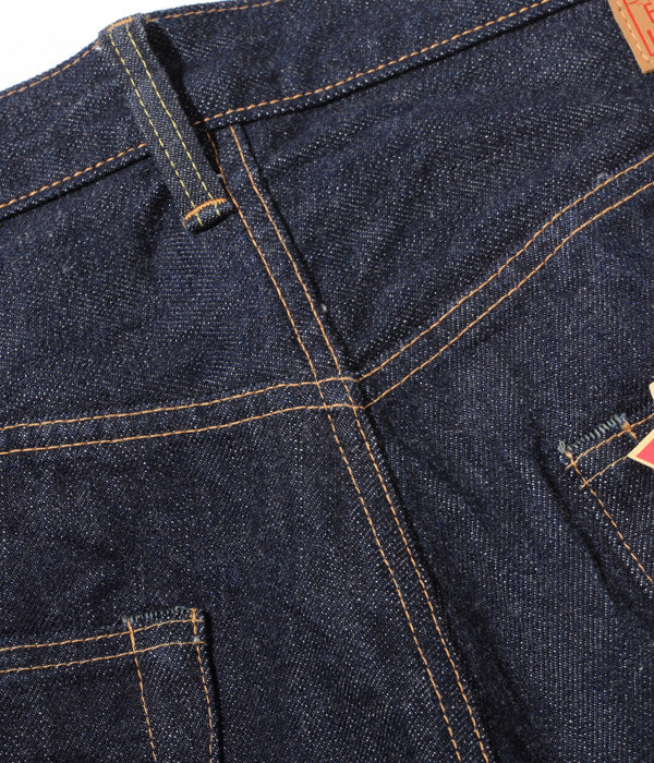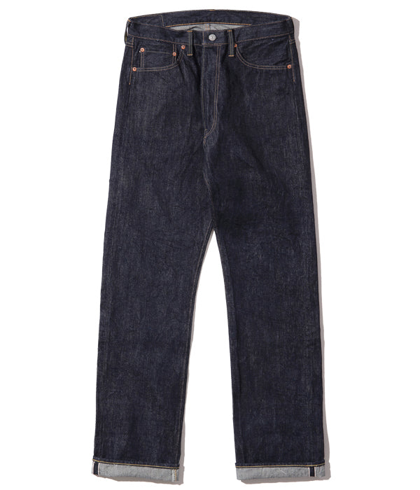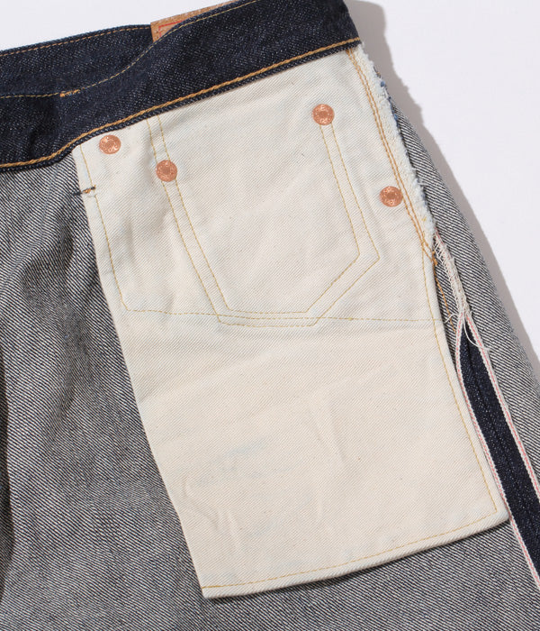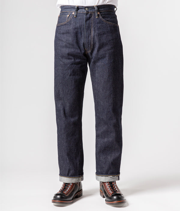 A zipper fly model released in the mid-1950s. The silhouette is regular straight, similar to the 1947 model. The denim fabric was newly developed from scratch based on the vintage fabric, so it has a different look and texture from other models. The zipper is Gripper Zipper’s brass pin-lock type.