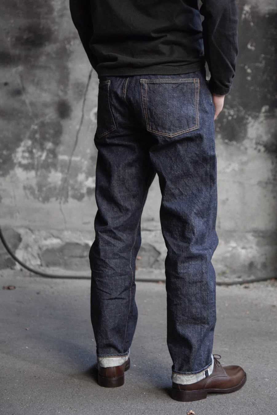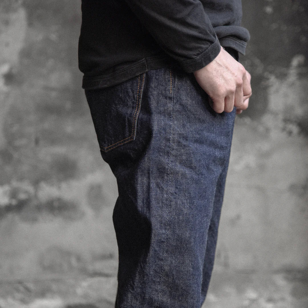We’d like to introduce a new standard silhouette in celebration of our 30th anniversary - the “Clean Straight”. These fall exactly in the middle between the 1101 and the 1108 and might best be described as having a hem width close to the 1108 while the width of the thigh is like the 1101. A diagonal center belt loop in the back give this model a distinctive flair.