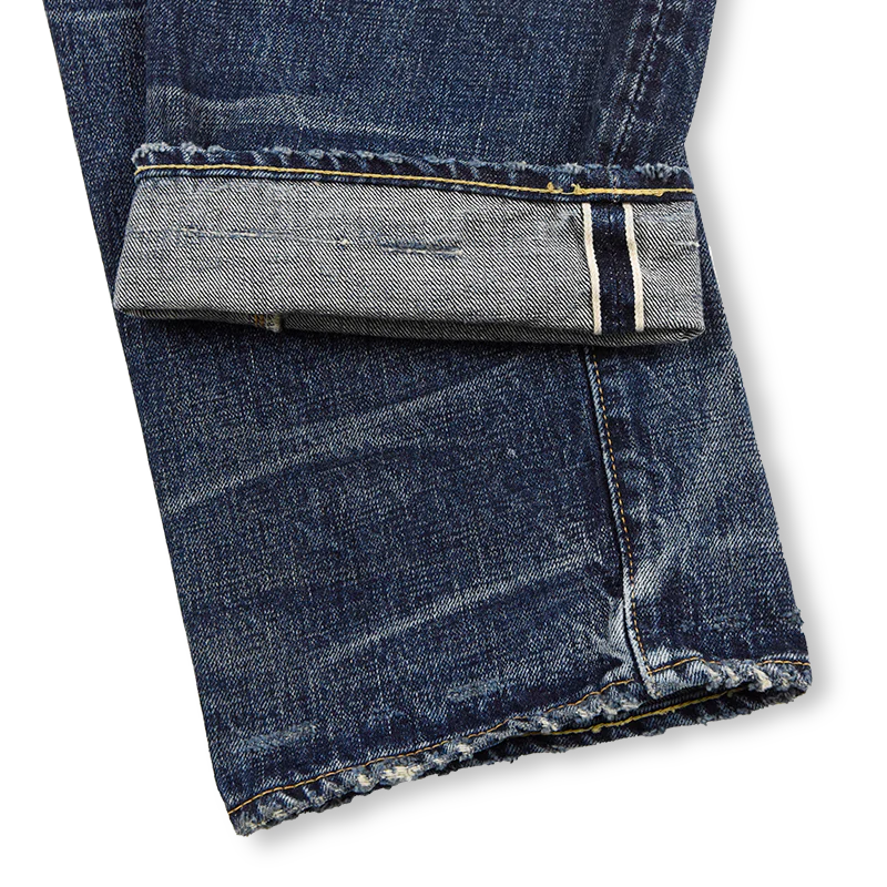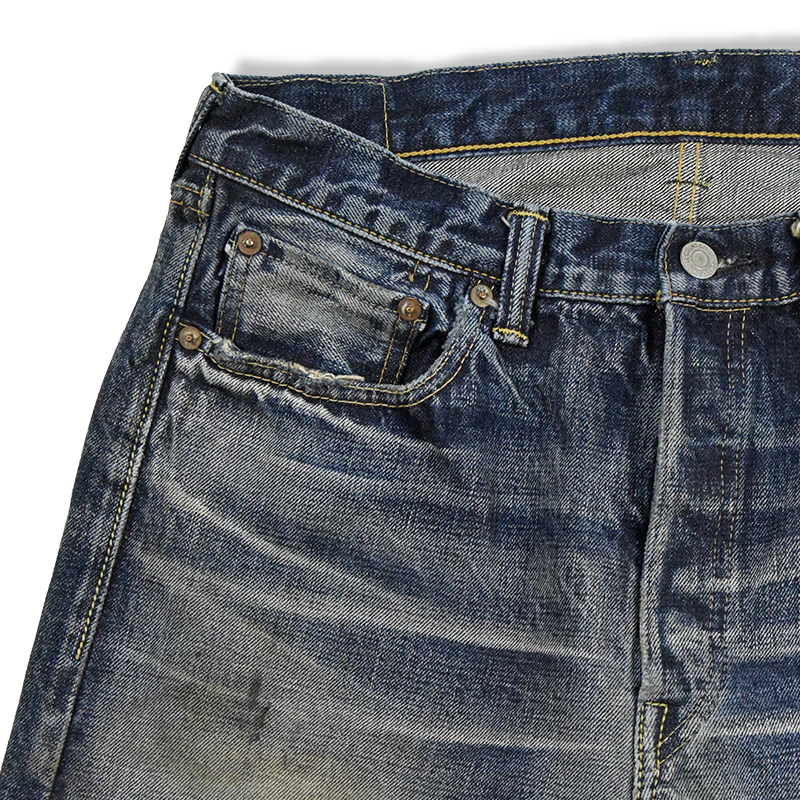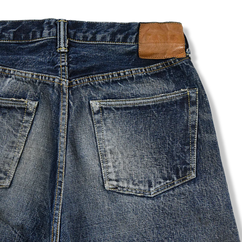 Newly processed item of 15.5oz denim, Full Count's standard material.We have not released a used denim design in XX material for a while, but after many trials and errors in processing methods, we have finally achieved a satisfactory result.The deep indigo that can only be expressed by XX Denim and the gradation of shades in the faded areas are exquisite.