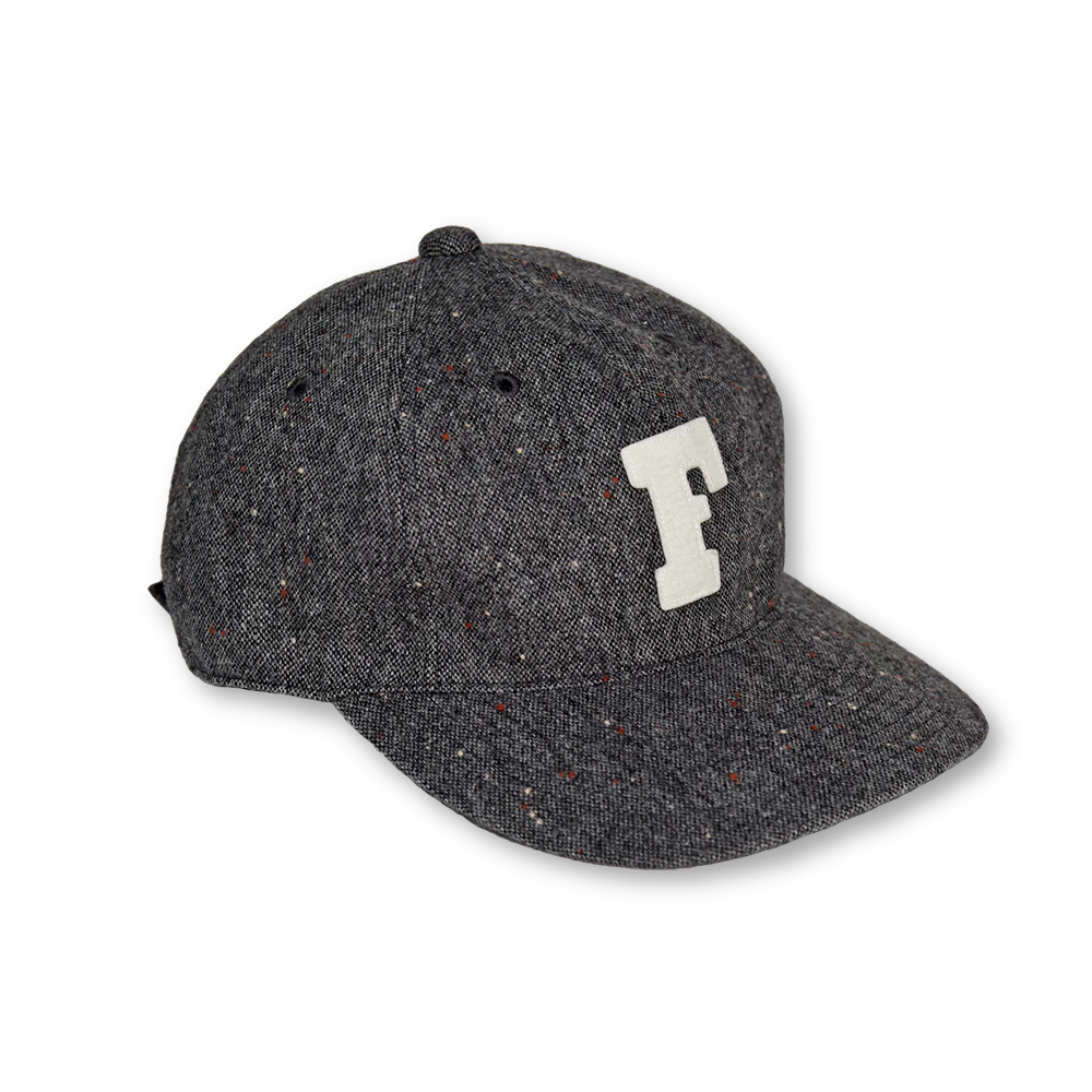 Our classic 6 panel “F Patch” Denim Baseball cap in a new material. A deadstock nep tweed has been used here, making it an ideal partner with casual jacket styles, and you can enjoy the look and texture of this fabric every time you wear it, just like your favorite old tweed jacket.
