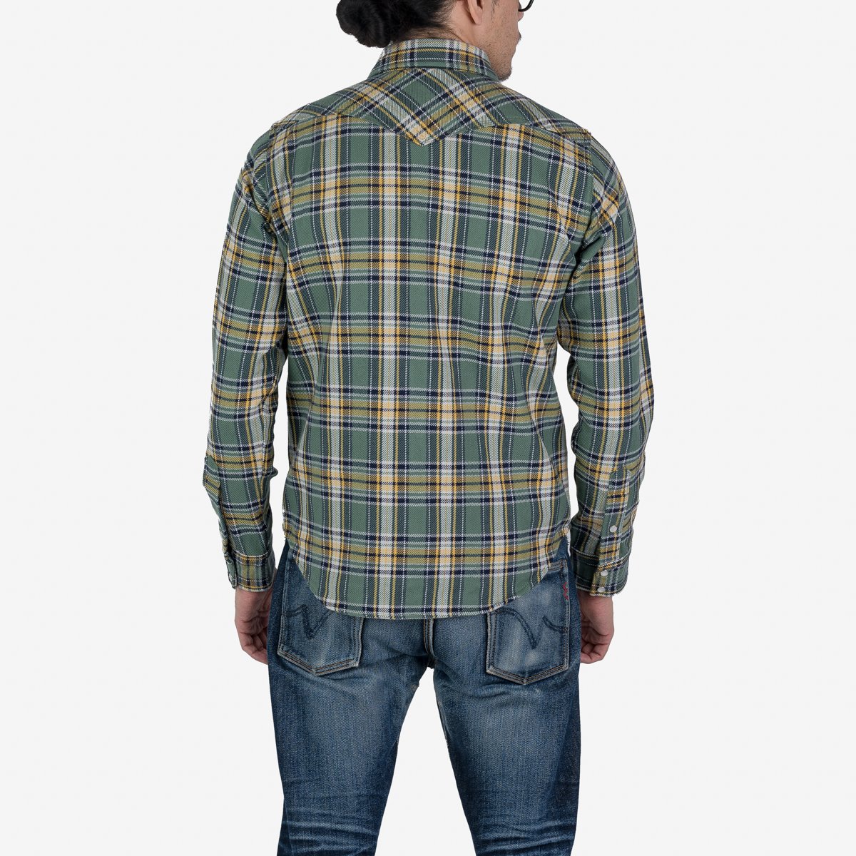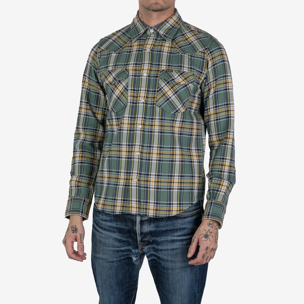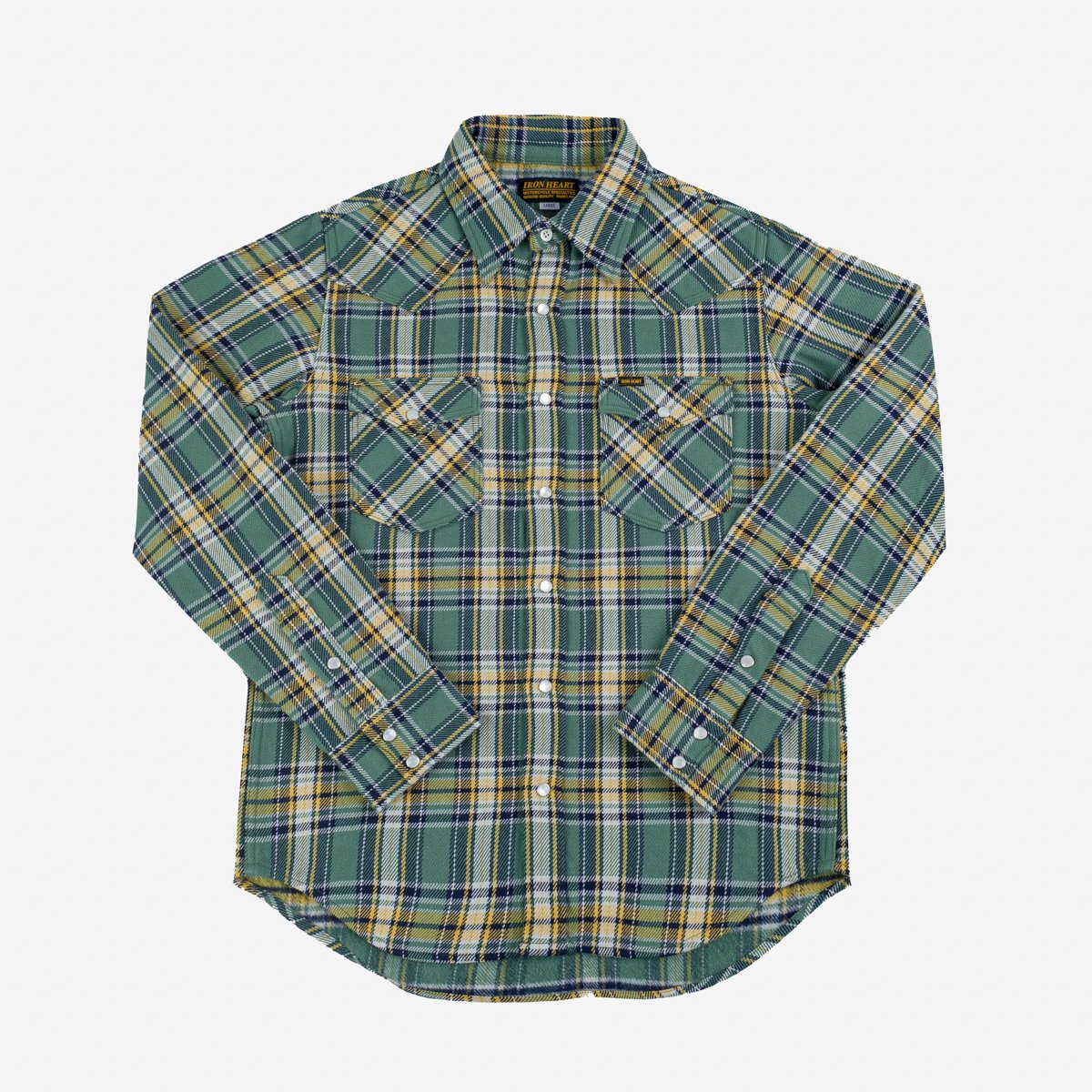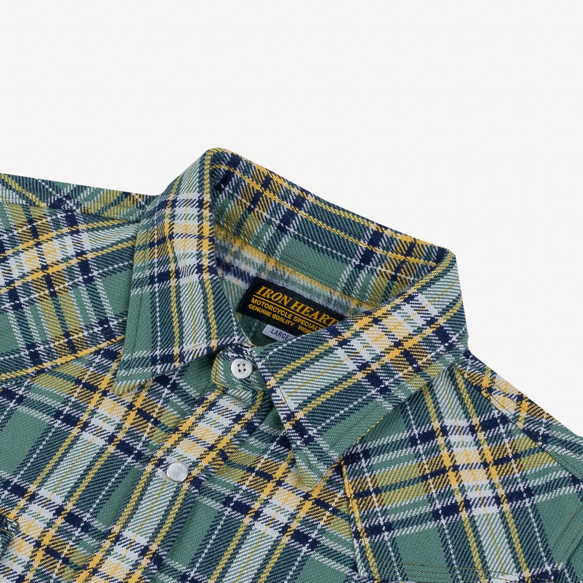 Iron Heart Ultra Heavy Flannel Tartan Check Western Shirt - Green 15% off