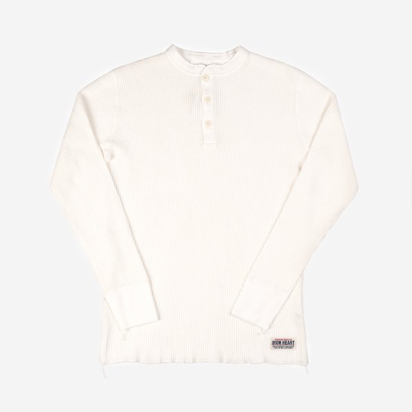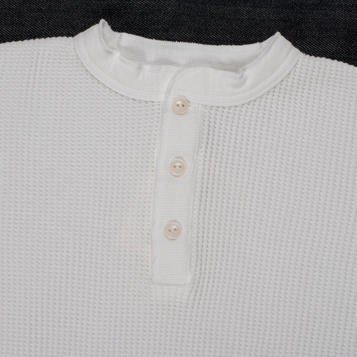 IronHeart Waffle Knit Long Sleeved Thermal Henley - White