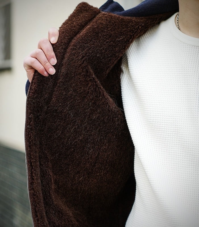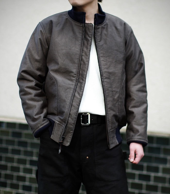 Inspired by classic deck jackets from World War II, the COLIMBO Ground Crew Jacket combines functionality and style. Its short design has evolved into the iconic N-1 long type, featuring a zip front and warm alpaca pile lining. Originally designed for marshals guiding planes, this jacket is also trusted by pilots for its high performance. Made with high count cord fabric, its dark color has a unique faded and yellowed hue due to sun exposure, giving it a vintage appeal. The alpaca wool lining also features a wind-proof film.