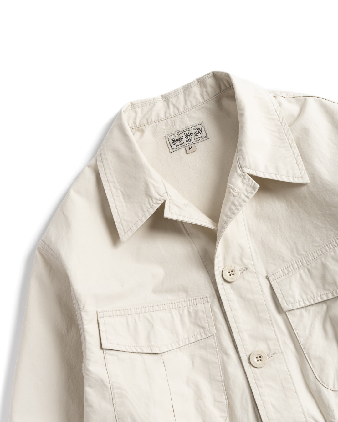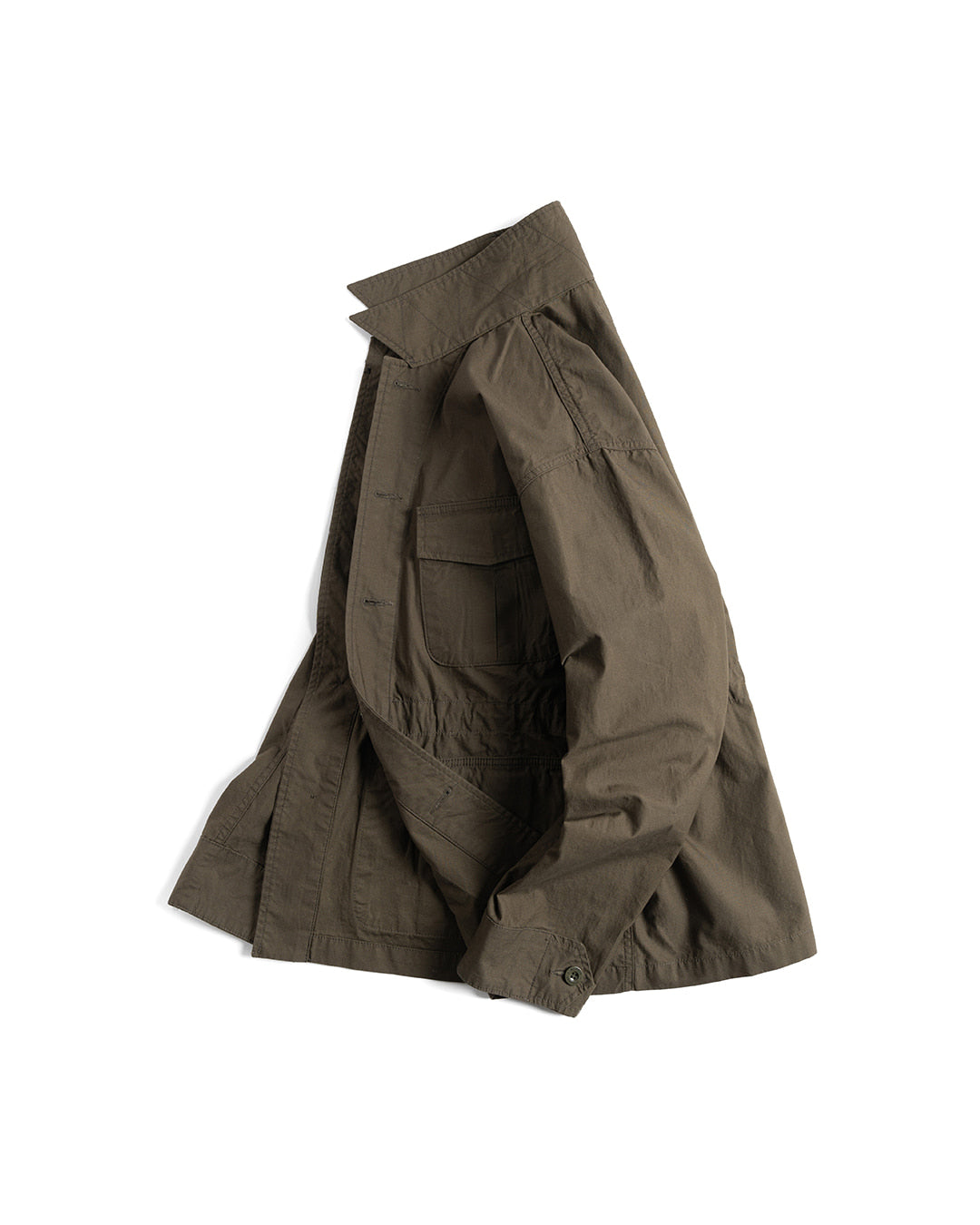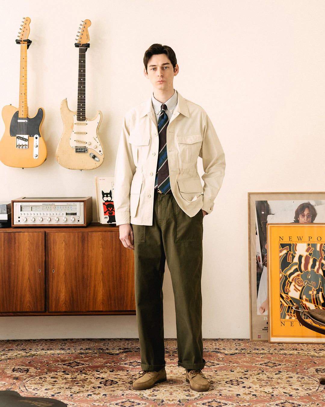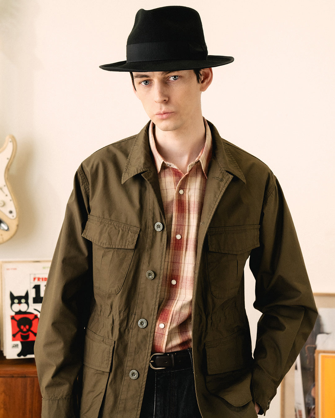 Expertly designed for past safari travels, this MILITARY JACKET combines elements of outerwear and Jungle Fatigue jackets from Boogie Holiday. With a garment washing process that provides comfort and natural style, it effortlessly balances casual and formal looks. Don't miss this versatile and attractive piece.