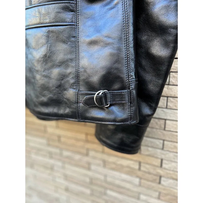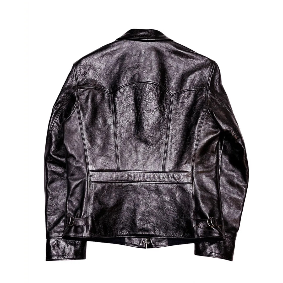 The Rainbow Country 30's Style Horsehide Sports Jacket "HERCULES" is a reinterpretation of the classic "HERCULES" jacket from Sears & Roebuck, popular in the 1930s. Made from 1.2mm thick vegetable-tanned horsehide with an aniline finish. The JELADO collaboration features a thick cotton-rayon lining for extended wear. Vintage-style zipper and original hardware add to its timeless design. Perfect for leather enthusiasts seeking exceptional quality.