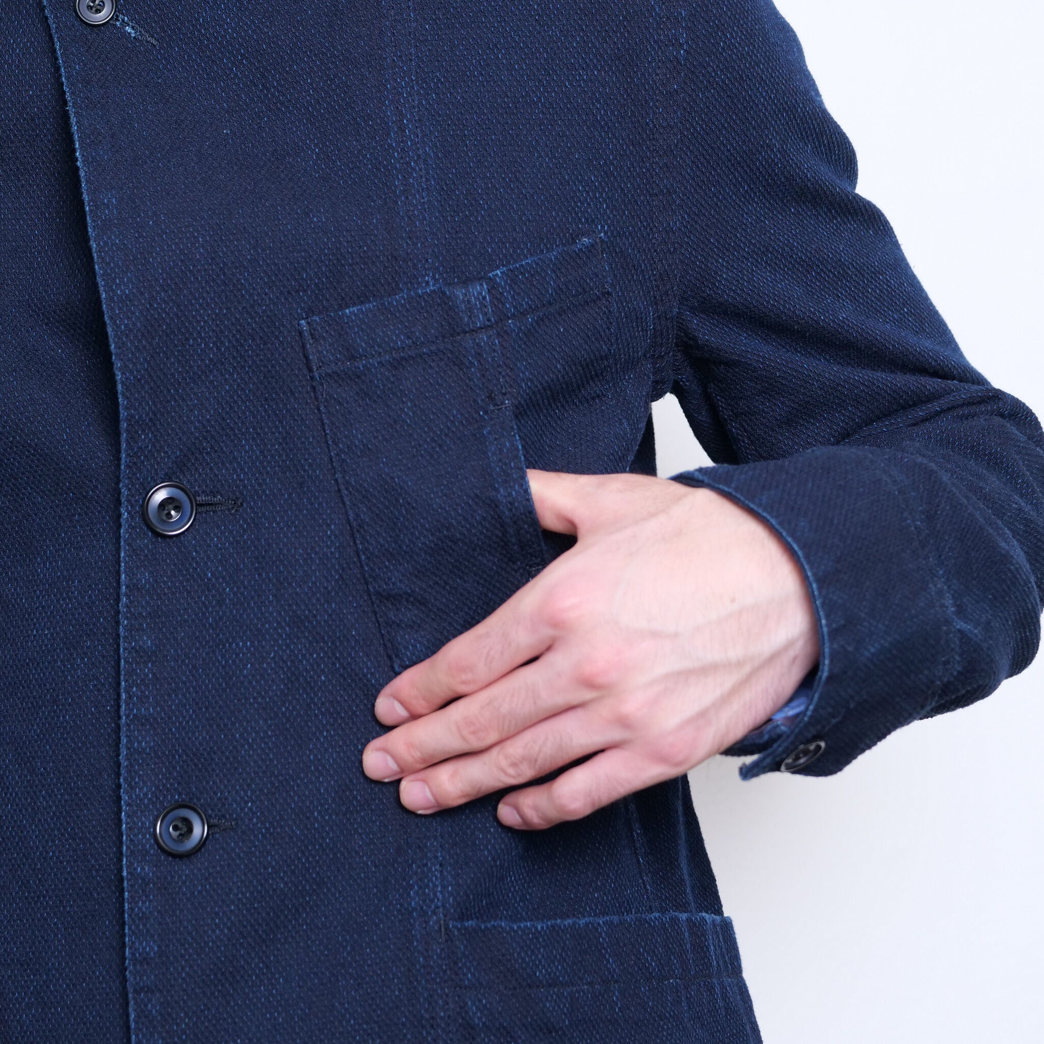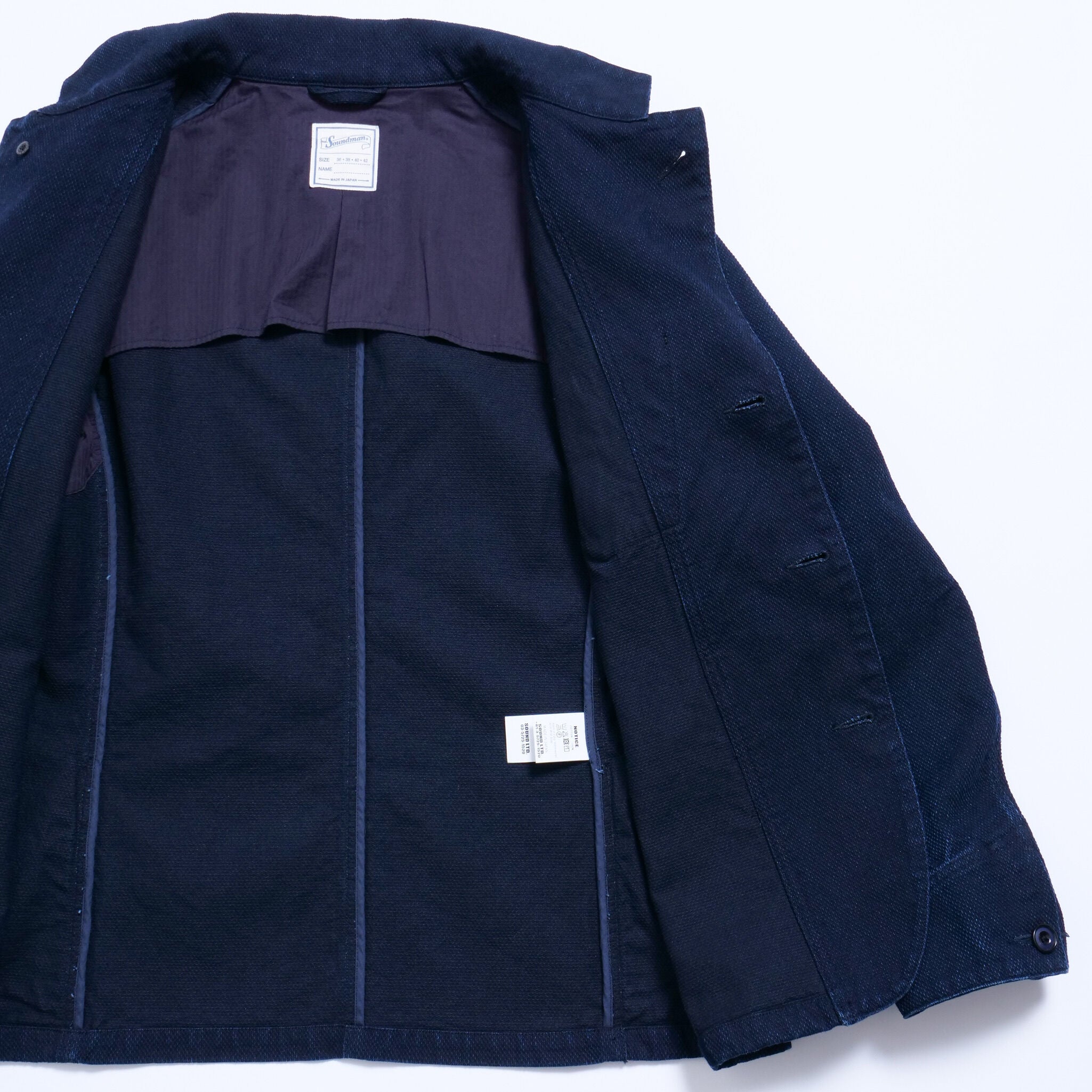 The Soundman Dudley Jacket is an iconic piece inspired by 1930s beer craftsmen. It features a 3-button design and is made with high-quality materials like indigo sashiko and double-dyed nut buttons. With its unique look and ball bio processing, this is a must-have for any classic wardrobe.