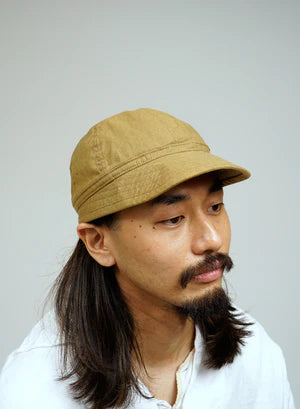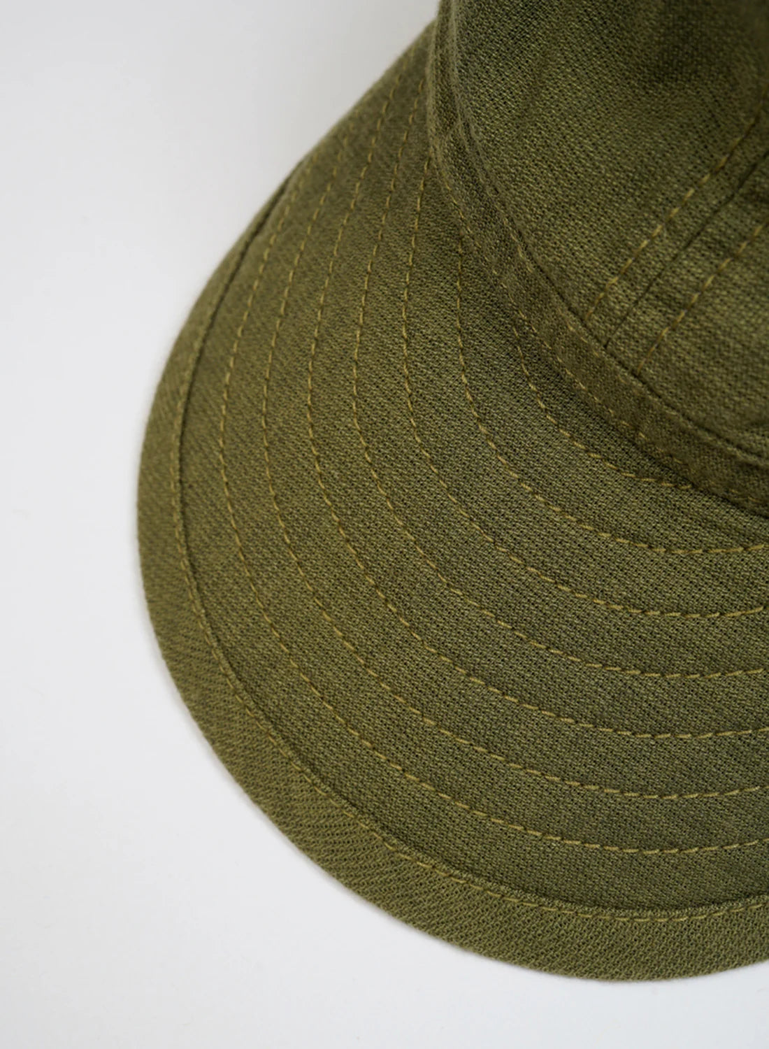 A cotton cap with a wide, tapered peak made with 1940's US Army Caps in mind. Features contrast stitching.
