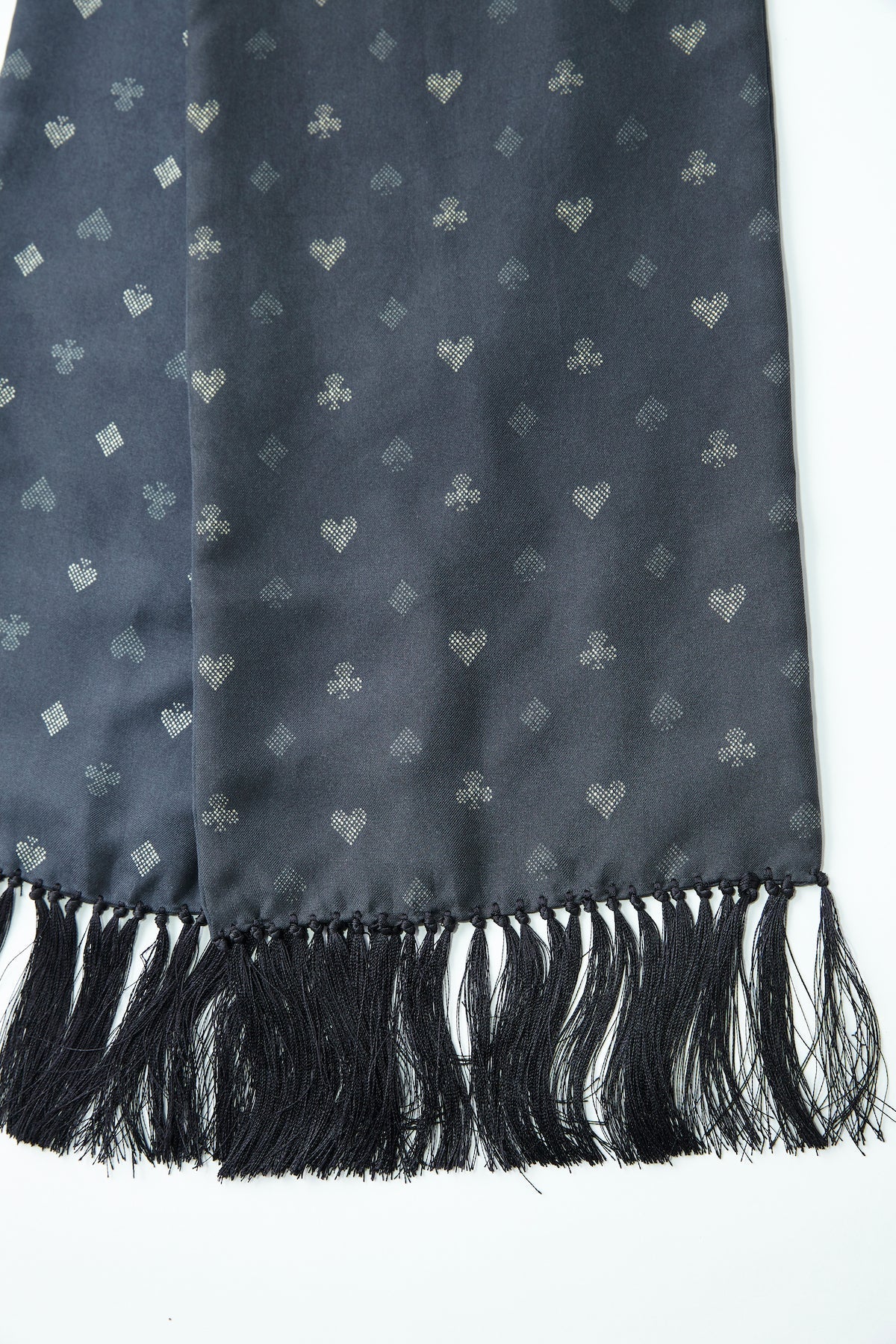 Elevate any outfit with our signature fringe stall. Featuring reversible color and texture options, this piece adds a touch of elegance to any coat or jacket. Made from soft and durable 14-momme silk, it provides a luxurious feel and can be worn comfortably in any season. Choose from unique mid-century inspired patterns for a stylish and refined look.
