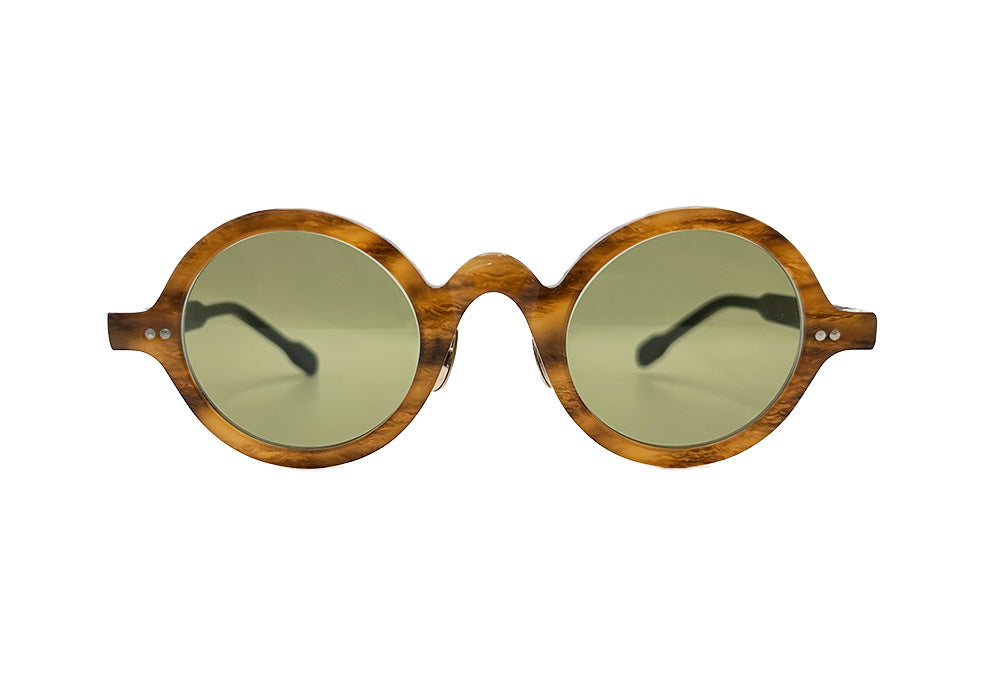 Inspired by a vintage French eyewear design, the GEORGES from Old Joe "GEORGES" O.J. GLOBE SPECS OPTICAL Co. features an edgy nose design and a unique two-tone frame and temple color combination for a stylish look. This collection was created by the designer of men's apparel brand, OLD JOE, and GLOBE SPECS. The brand name, "Old Joe Globe Specs Optical Co.", pays homage to a fictional company that used to produce vintage eyewear.