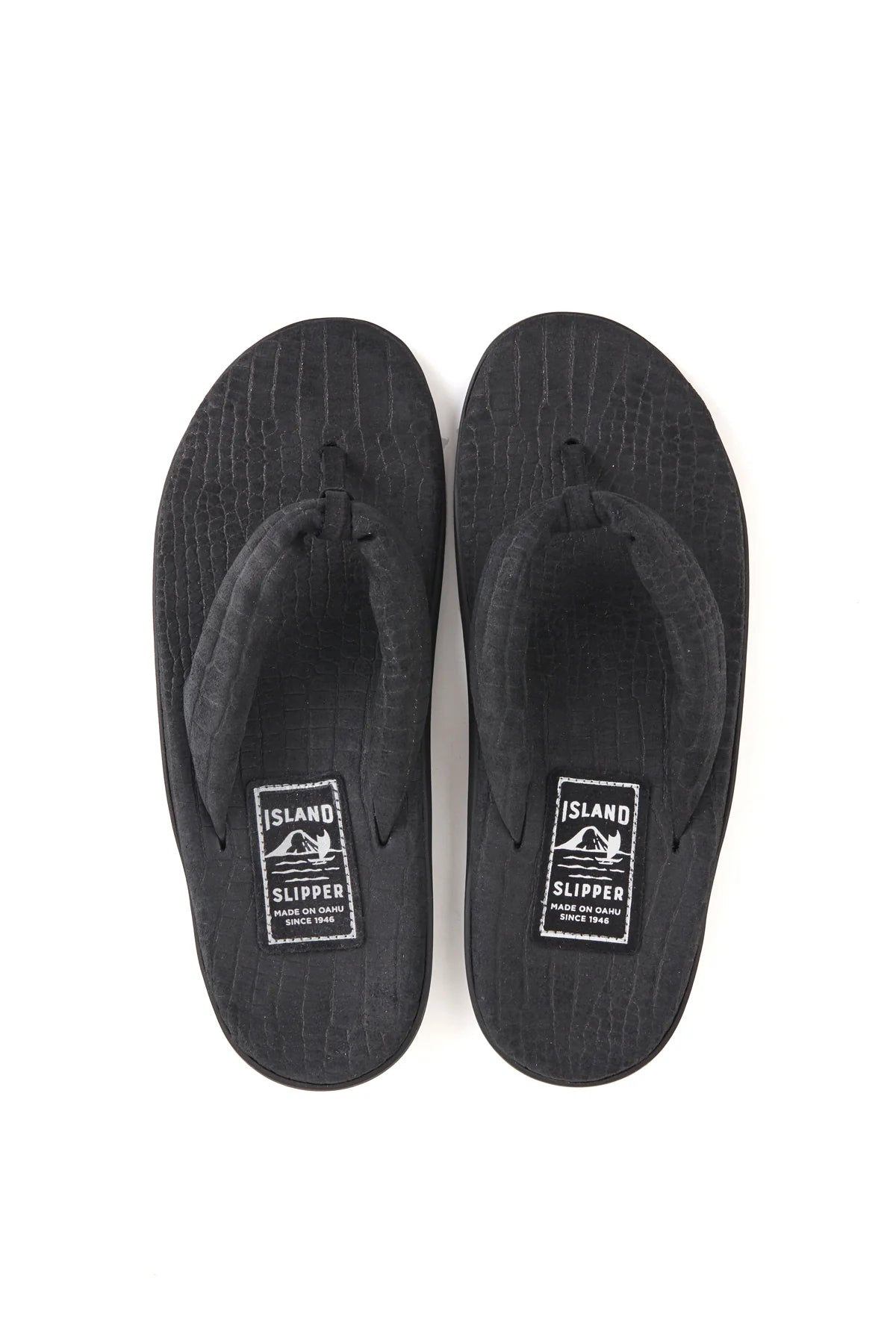 The OLD JOE SETTA SLIPPER, crafted in collaboration with ISLAND SLIPPER, blends Hawaiian sandal heritage with a unique design inspired by Japanese snow shoes. This season’s edition features crocodile-embossed suede uppers that offer a distinctive, refined look. The soft upper material ensures comfort, while the hard leather insole provides durable support that maintains its shape over time. Perfect for those seeking a stylish yet comfortable slipper with expert craftsmanship and a one-of-a-kind aesthetic.