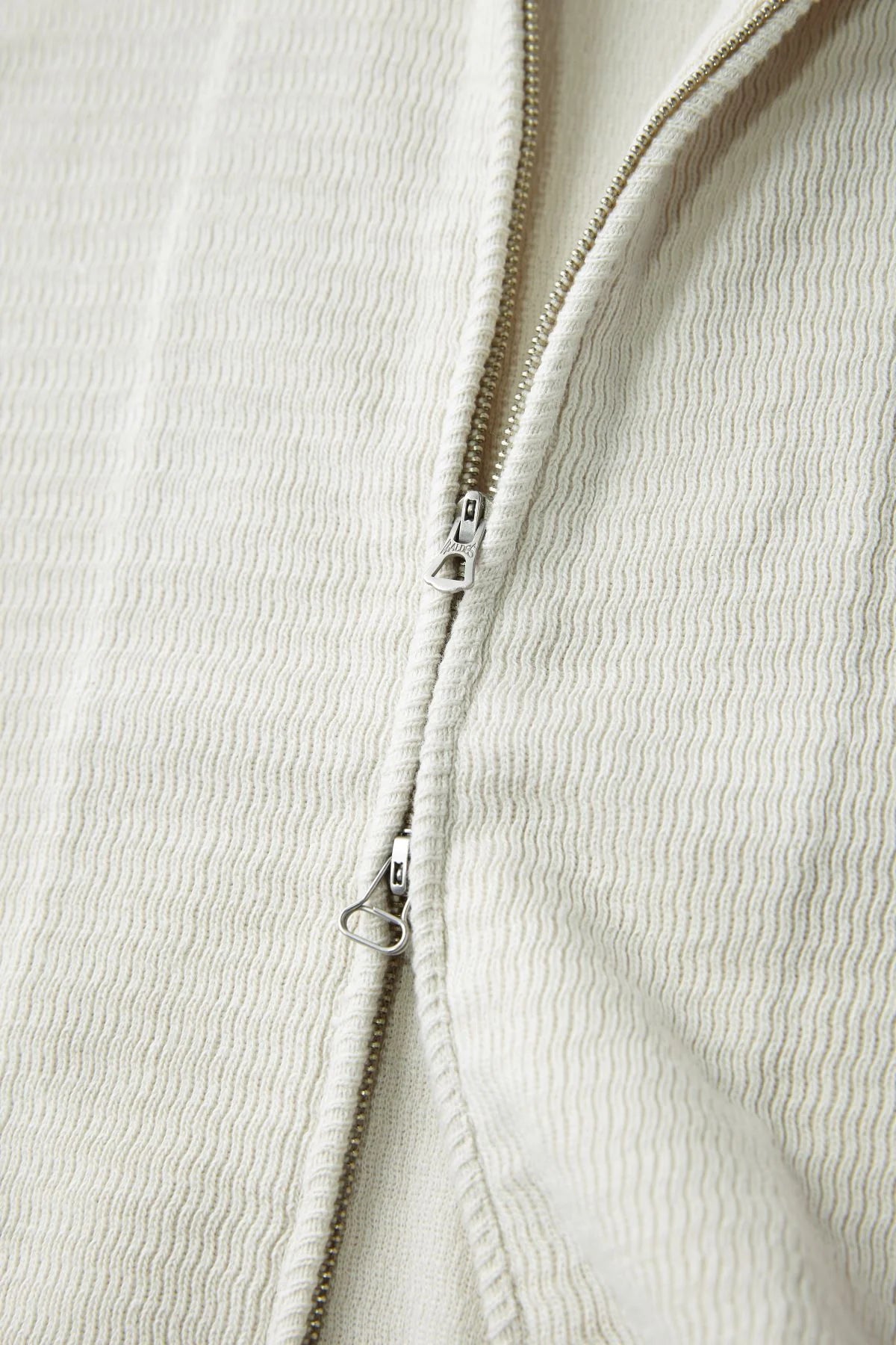 This Old Joe STRIPE BASQUE ZIP SWEATER is knitted with a rugged texture yarn, giving it a unique, partially needleless border pattern. It offers a timeless hand-crafted look and feel, with subtle and stylish details that make it one of a kind.