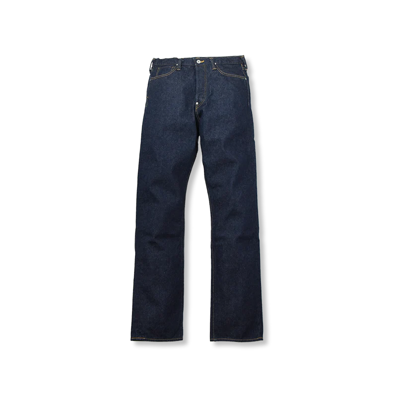 After a 15-year hiatus, we’ve revived the 1107 Cowboy Jeans as a WWII model. Following the details of the Great War period, these feature 1-star laurels and stitched pockets, while reinforcement cloth and coin pocket rivets have been omitted in keeping with the times. Leaving bits of cotton leaf and stem in the mix, we’ve spun up a thread that is deliberately rough and full of character, while the pale blue color hearkens back to the original indigo color. You can enjoy beautiful vertical fades made possible by the left-hand twill.