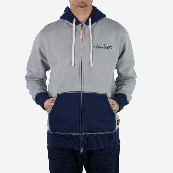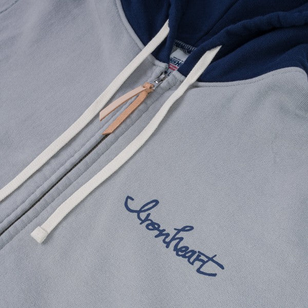 Iron heart 14oz Ultra Heavyweight Loopwheel Cotton Zip Up Hoodie - Grey/Navy 30% off