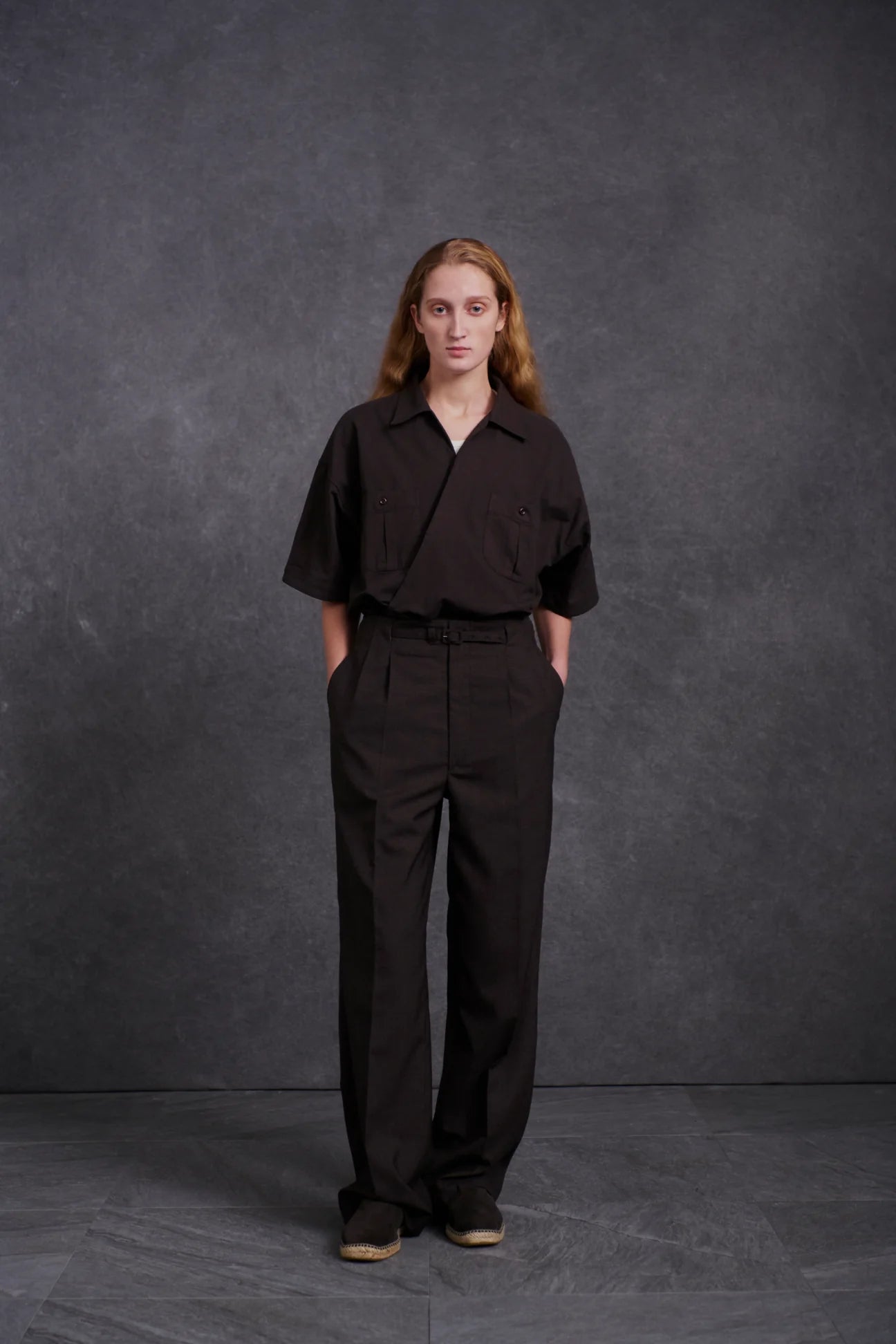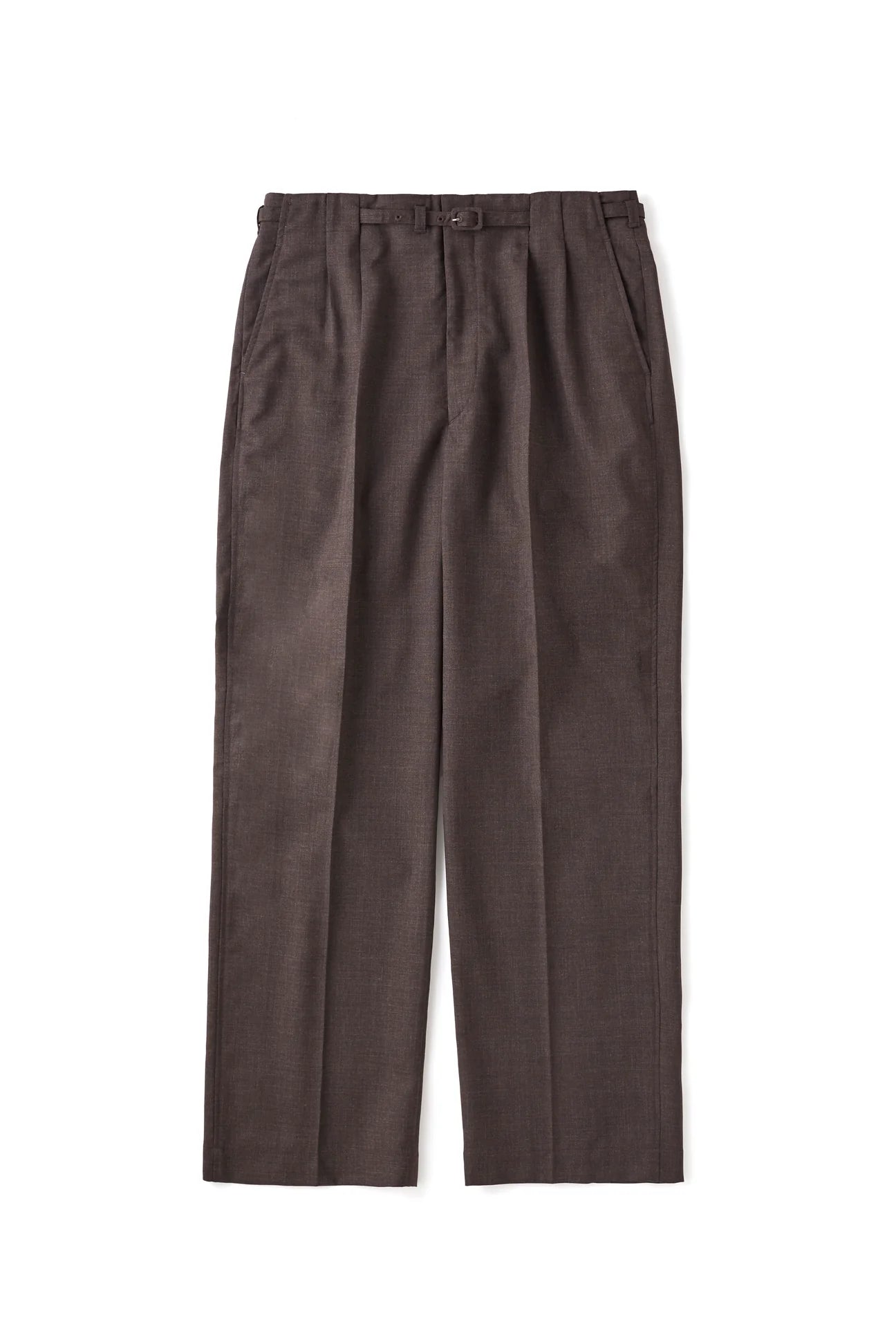 Introducing the Old Joe HIDDEN LOOP BUDDY TROUSER, incorporating unique mid-century details. The straight silhouette offers a relaxed fit around the hips, while the striking belted loops are created with darts and pocket accents. The minimal, modern waistband and classic waistband add to the elegant, textured fabric of 2/60 wool.