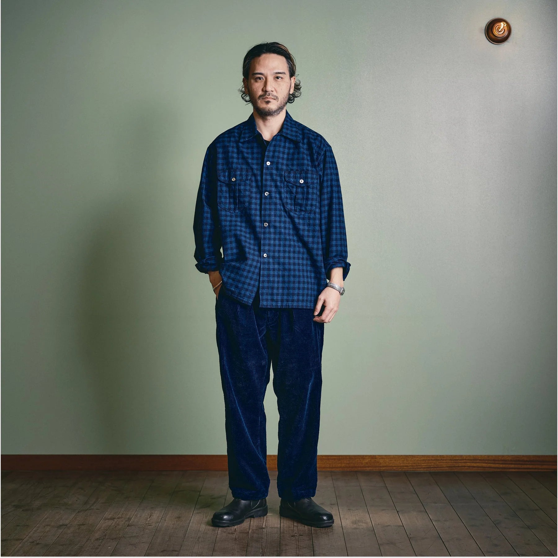 Our mid-1990s classic, relaxed fit with open collar, flapped round with point pockets.