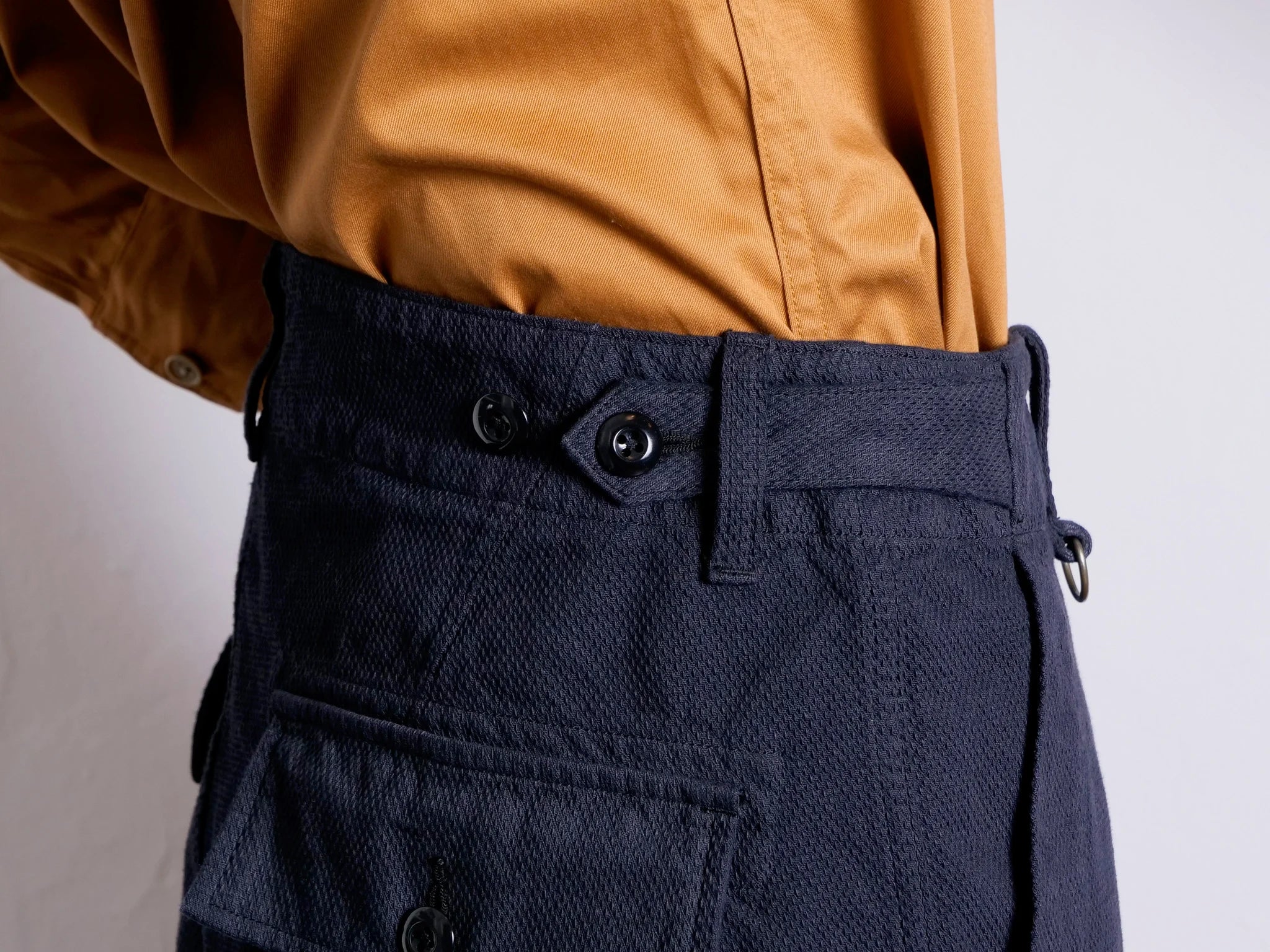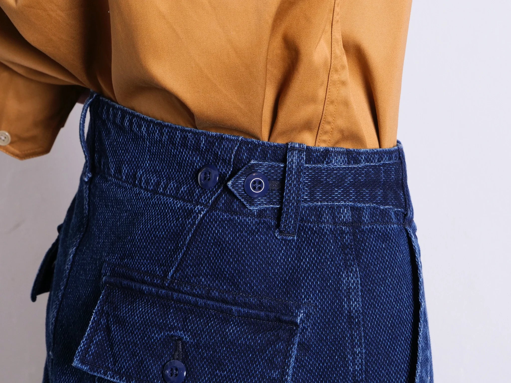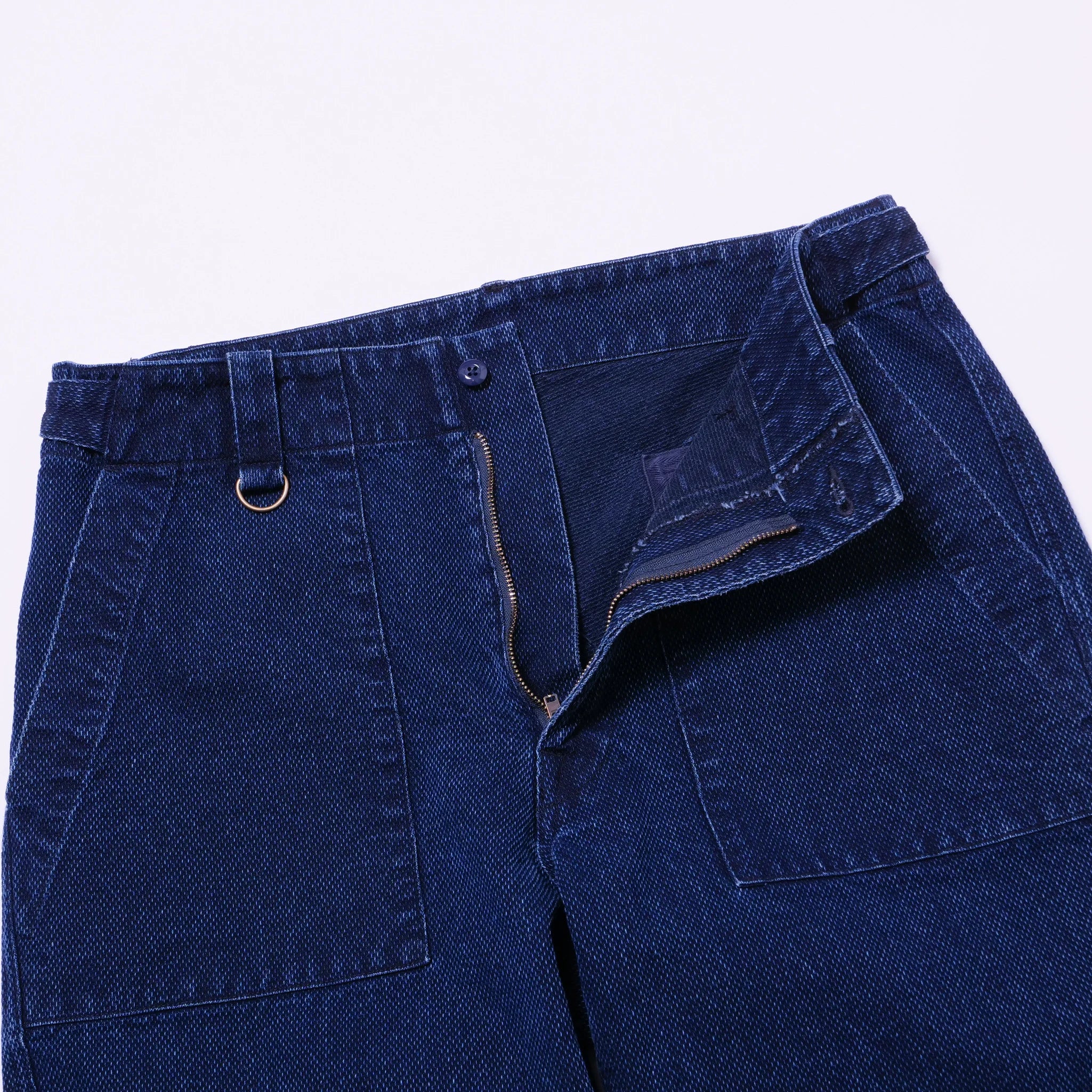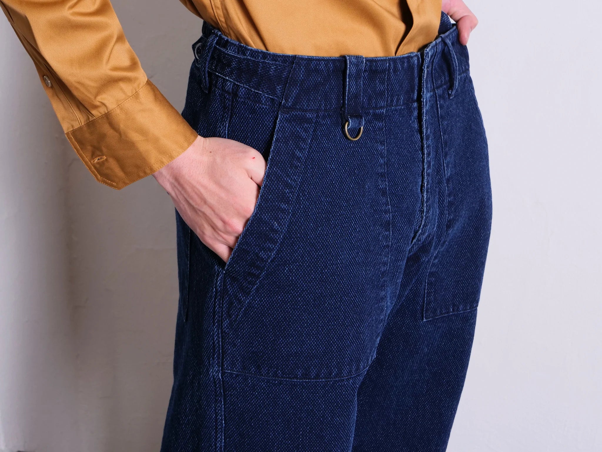 Embrace the comfort and versatility of Sandman Oldbaker Indigo pants. Originally designed for bakers and now recognized as military fatigues, these pants feature a tapered silhouette and unique details such as D-rings and a streamlined waist adjuster. Made from indigo dobby with a ball bio wash finish. Pair with the matching Marcy waistcoat.