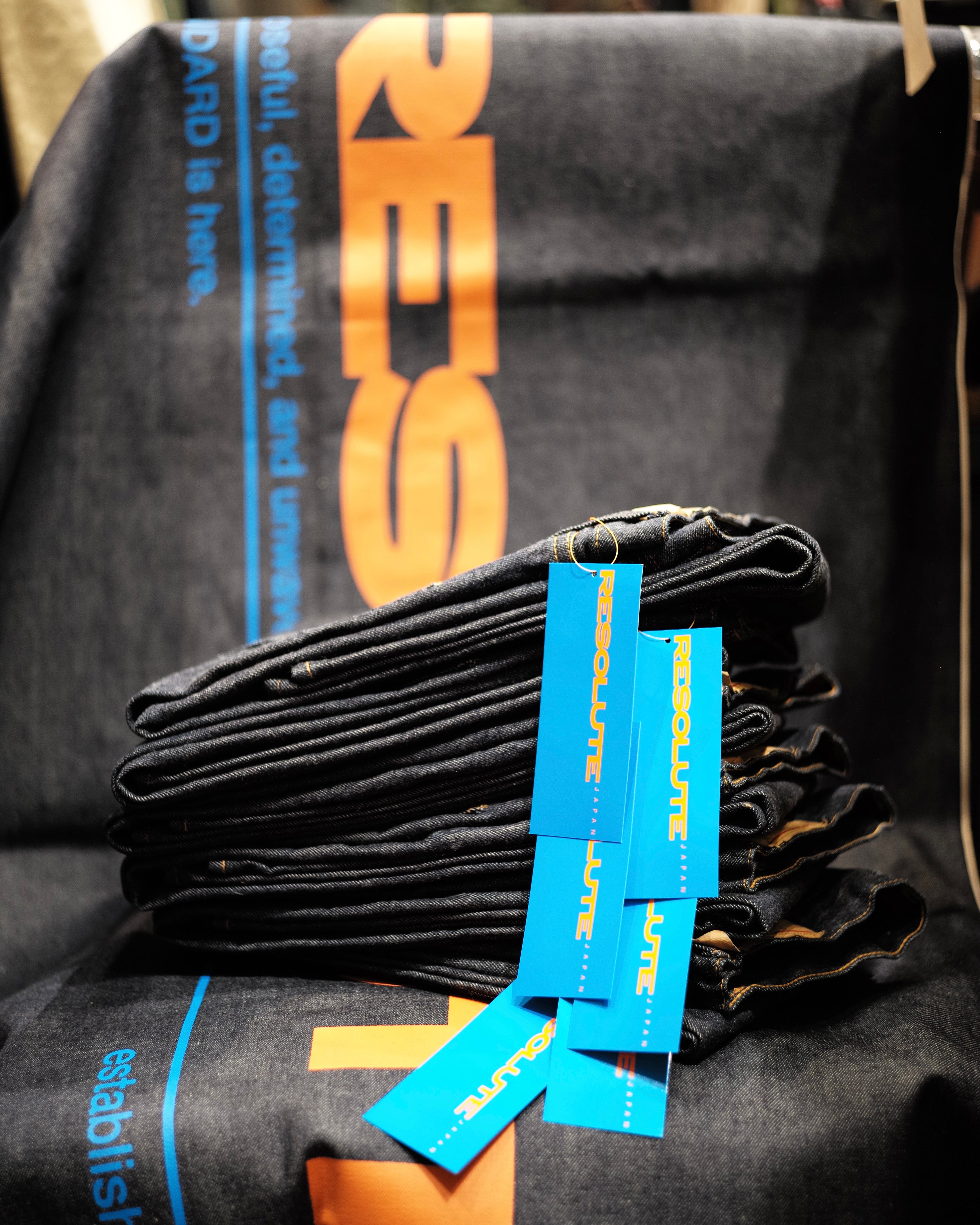 RESOLUTE, a jeans brand, was launched in 2010. Yoshiyuki Hayashi, Designer of RESOLUTE, is standing on his diversified experience ofover 30 years, he designed exclusively 4 types of jeans to start a jeans –only-brand. The entire procedure of RESOLUTE jeans production is all MADE IN JAPAN, from its yarn dyeing to its yarn weaving, sewing and processing.