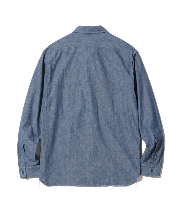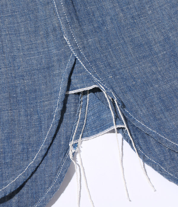 The chambray shirt adopted by the U.S. Navy is a long-lasting utility shirt that has been provided from the 1930s to the present. This chambray shirt is a reproduction of the shirt adopted in the 1950s. The shape and specifications have changed with the change of the times, but the shirt adopted in the 1950s from the beginning of adoption is a good old era specification with gussets on both sides of the hem and a collar with a placket. The fabric of Chambray in this era is characterised by a lot of tension, and it shrinks by repeated washing, resulting in a unique texture.
