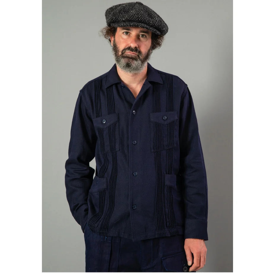Experience effortless cool with the Soundman Durango shirt jacket. Its iconic Cuban shirt design, complete with 4 pockets and pin tuck details, is a summer staple. Made with 10x8 cotton twill and cat eye buttons, this heavyweight piece is perfect for fall. Embrace its relaxed boxy fit and upgrade your wardrobe today!
