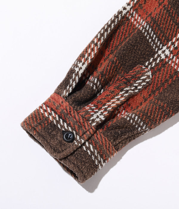 Made of heavy twill check fabric. Unique aging process is added only on the surface of the shirt to look as if it is an authentic vintage that has been worn over years.