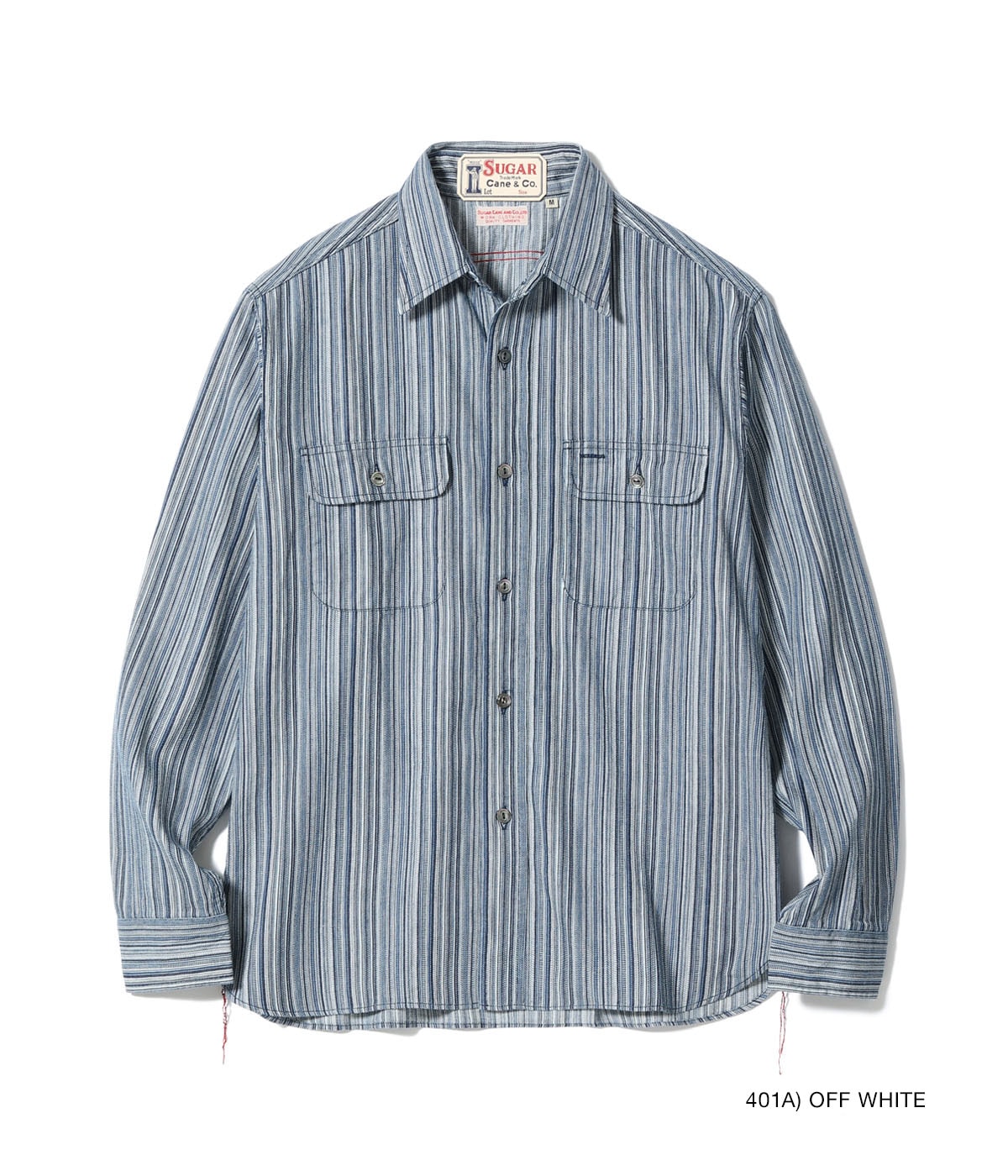 Sugar Cane NATIVE AMERICAN DOBBY STRIPE WORK shirt