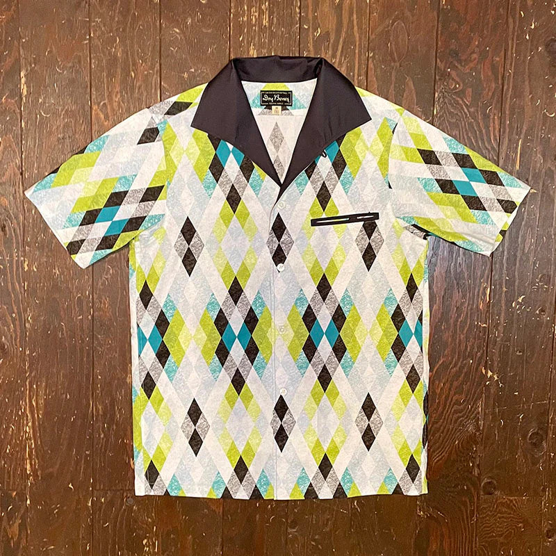 Dry Bones S/S Print Italian Collar Shirt “LOZENGE”