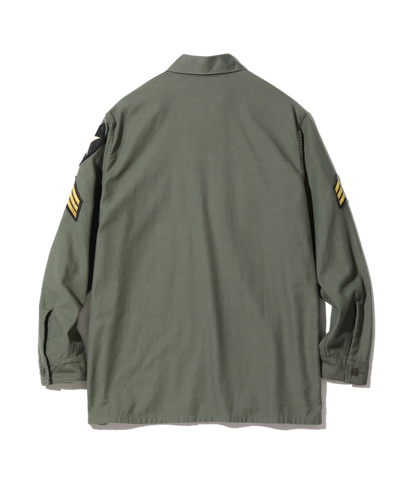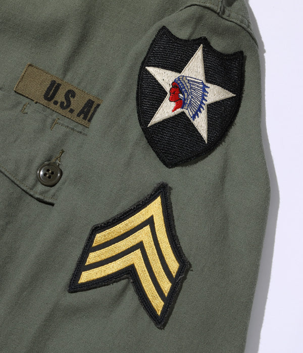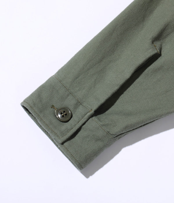 The utility uniform of herringbone twill, which the U.S. Army had adopted since World War II, continued to be worn even after the Korean War began. However, in Korea, which is a place of severe winter, more cold-proof combat clothes were needed, and field jackets M-51 and M-51 hoodies were developed and adopted. The OG-107 utility uniform appeared with that flow. There are pockets with flaps on both chests using thick satin, and there is a pen in the left pocket. It was common to wear a collar without a collar without the first button. The feature of the initial type is "shirt sleeves" with cuffs, and after the second model, it became "tube sleeves" without cuffs, and it was changed to a specification conscious of mass production.