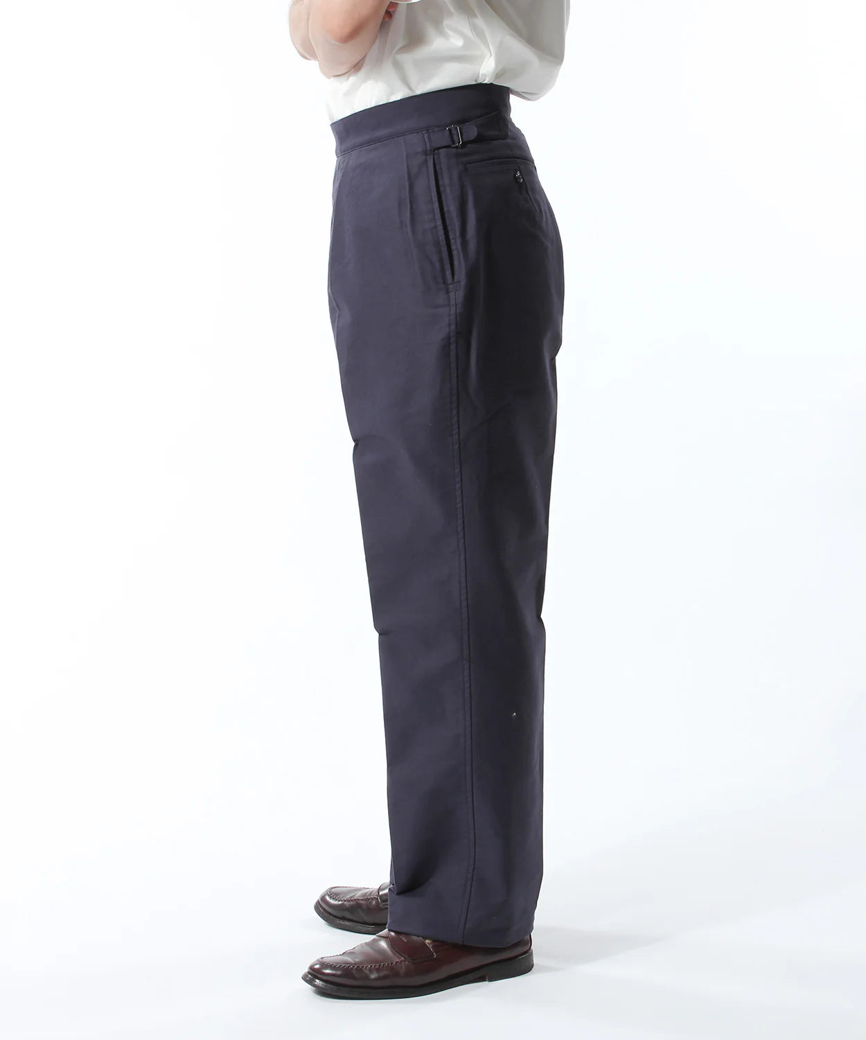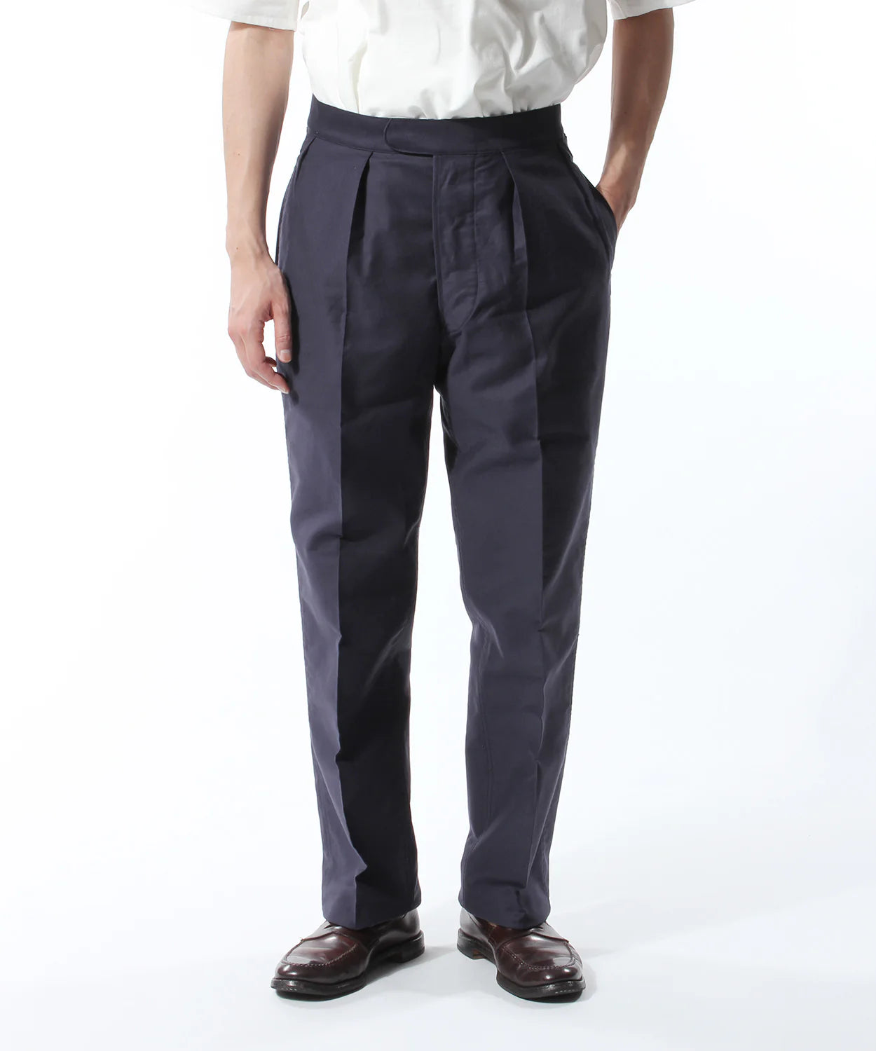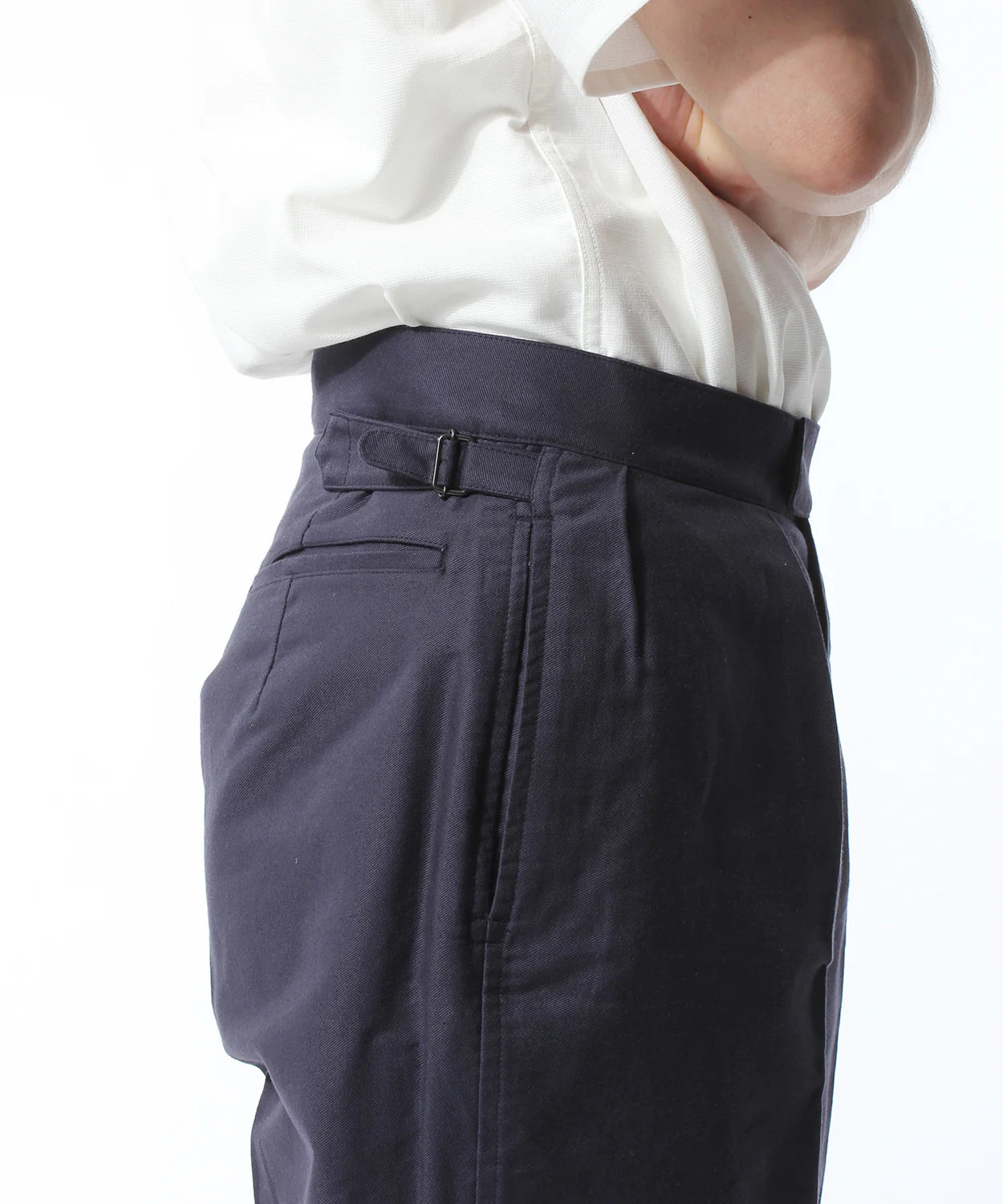 Constructed with authentic vintage British naval pants, ANATOMICA ROYAL MARINE PANTS II feature a side-adjustable design and original fabric from the 1940s. The slanted twill fabric offers a unique, slightly faded look. Note: product is unwashed and may shrink 0.5-1cm in the waist and 1-1.5cm in the inseam when washed and air-dried.