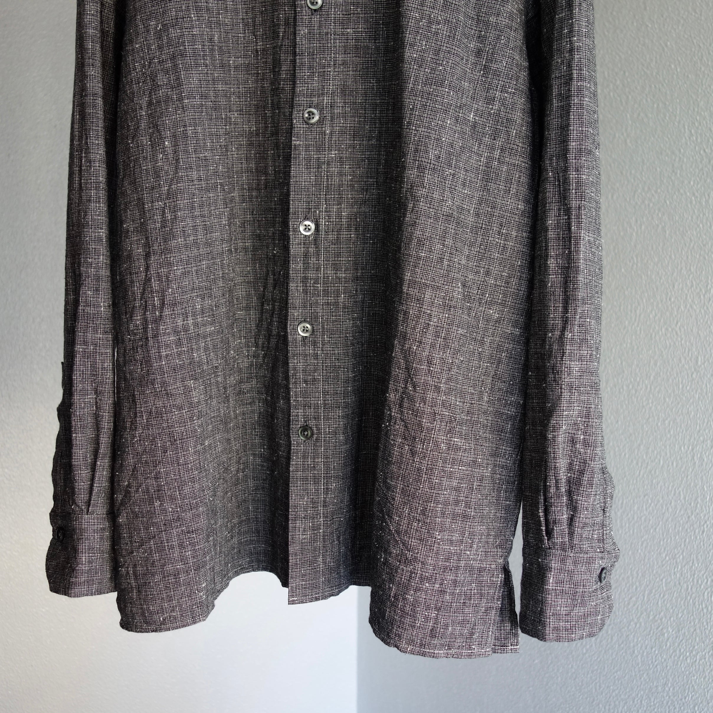 Expertly crafted from a blend of 62% cotton and 38% linen, this ATELIER GARDENIA shirt features a unique brush check pattern with hints of neps and flax knots. The fabric has been treated with a dry touch and garment wash, giving it a soft and airy feel. The semi-wide spread collar adds a touch of sophistication and the straight cut hem adds a sleek look. Versatile and comfortable, this shirt is perfect for any occasion.