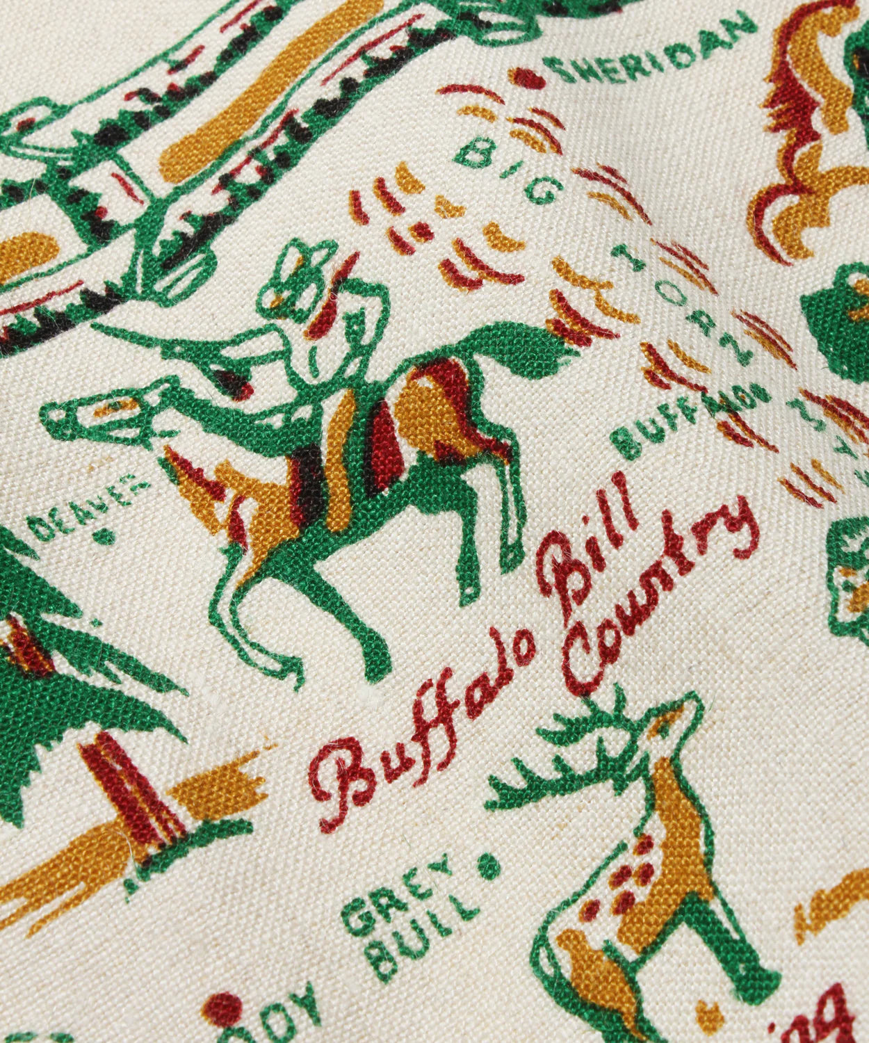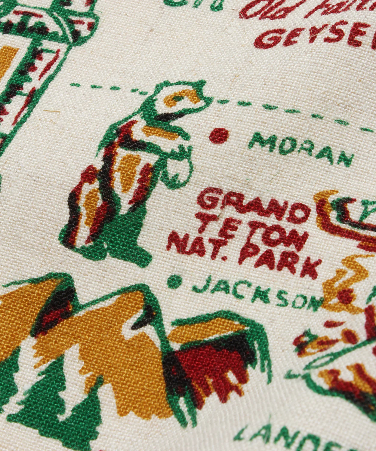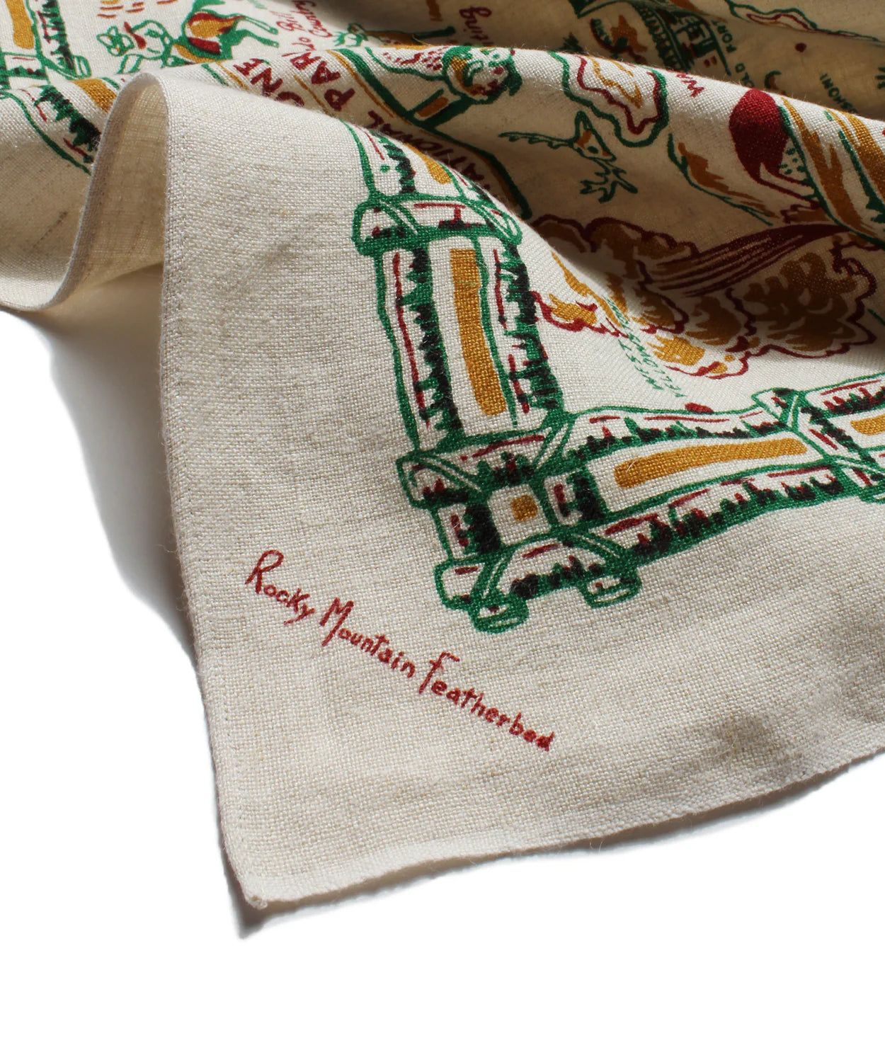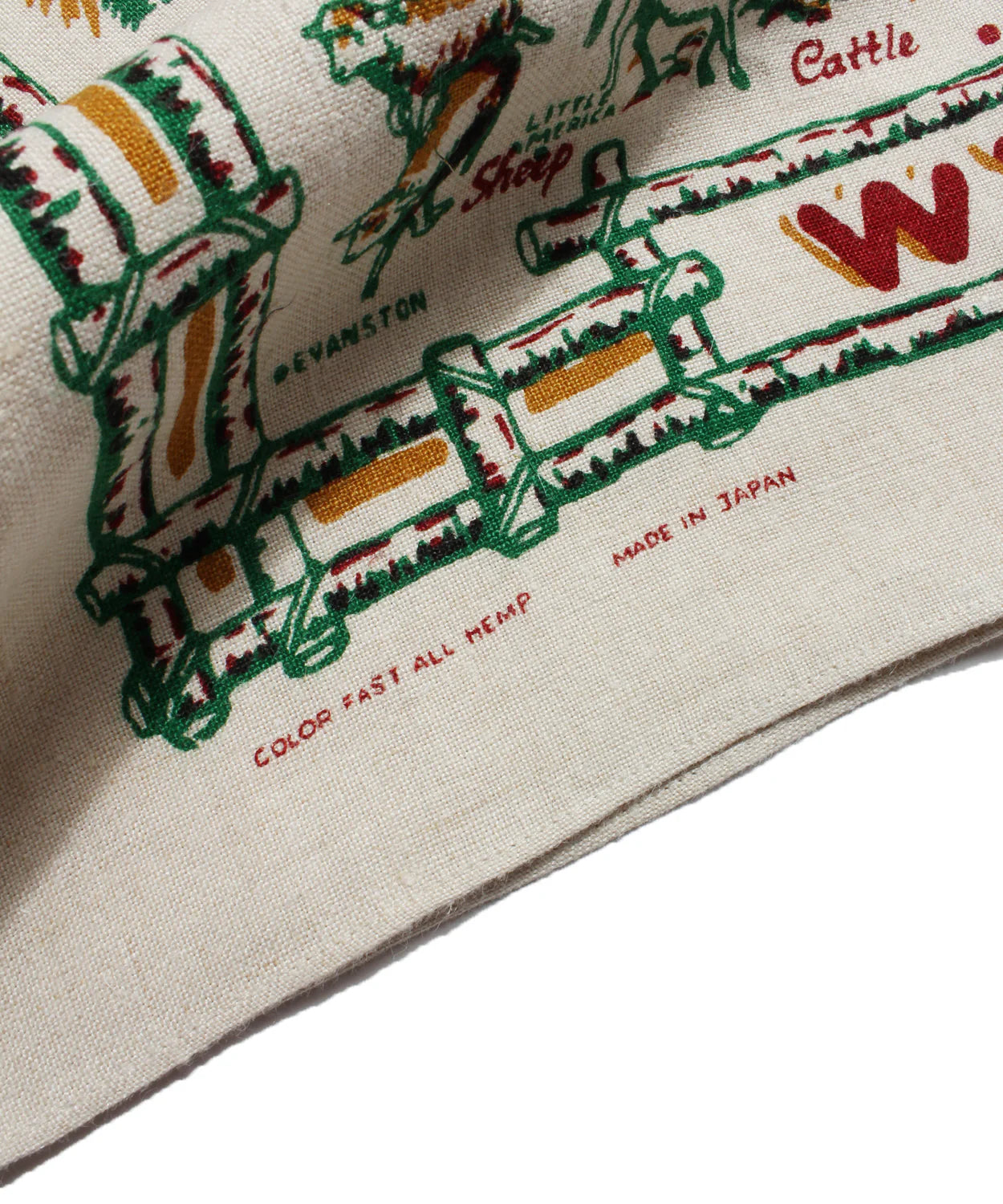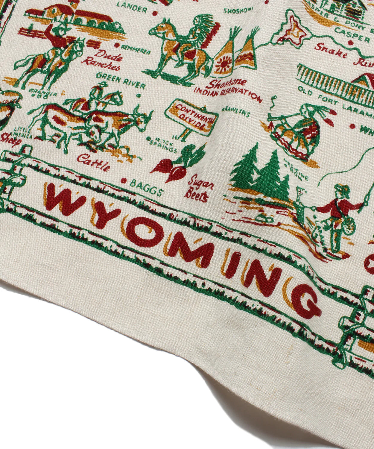 Experience the rugged beauty of Wyoming with our BANDANA WYOMING. Made with natural, thick hemp fabric and featuring colorful illustrations of local landmarks, it can be used as a scarf or bandana. Embrace the great outdoors in style.