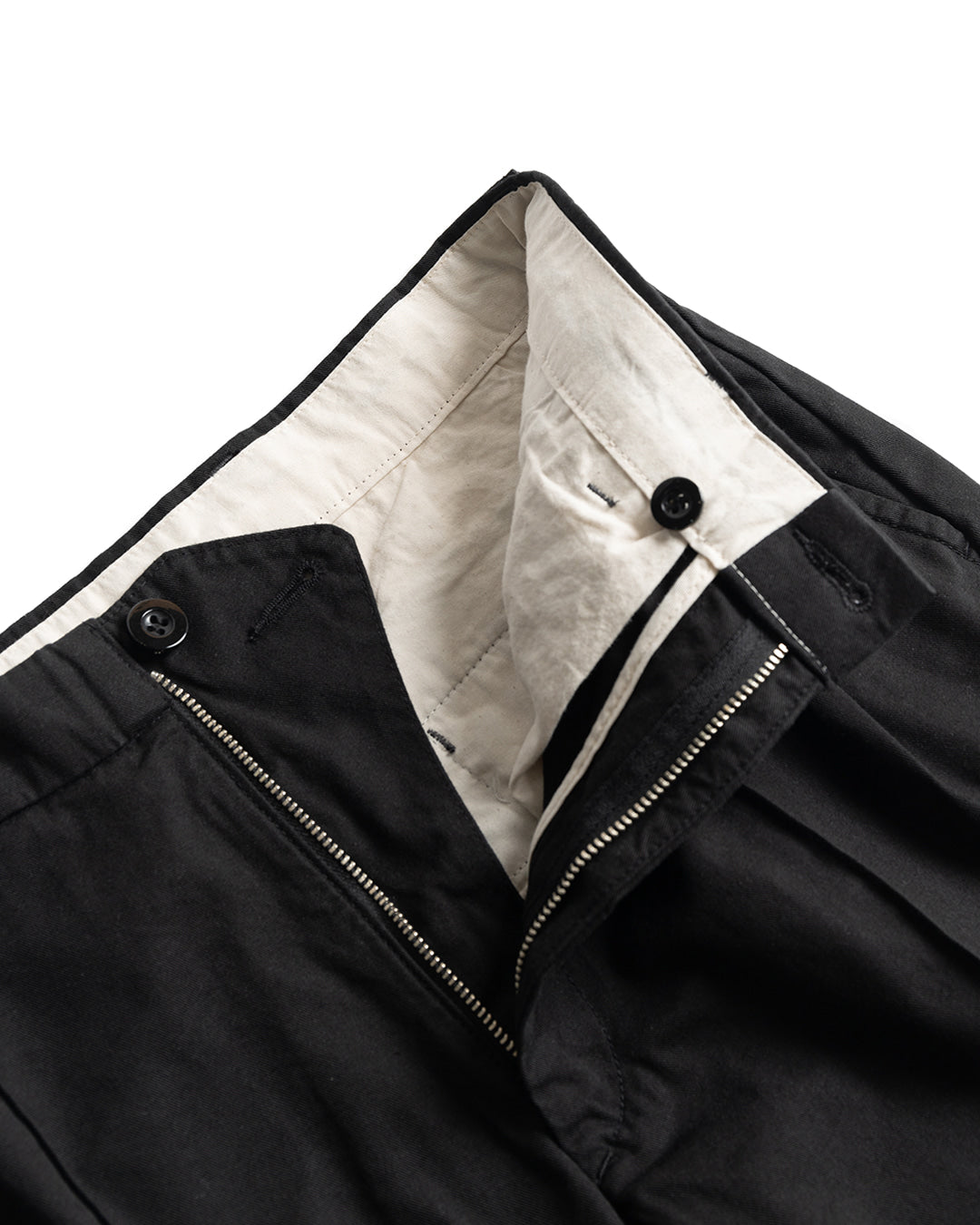The service trouser is inspired by the service uniforms of past European armies. Made with a cotton/rayon blend and garment washed to minimize shrinkage, it offers both functionality and a sleek silhouette with a high waistline and front pleat detailing. Perfect for any occasion.