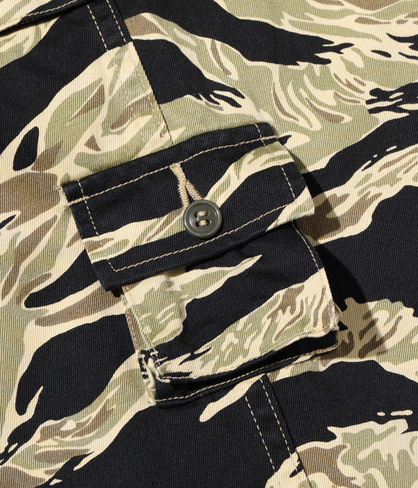 In the 1960s, the U.S. Forces Japan Acquisition Headquarters chose to source camouflage uniforms in Japan. This is because it combines advanced printing technology and speedy productivity, and is also superior in terms of cost. The pattern was left up to the factory floor in various parts of Japan, which is why countless variations of the tiger stripe pattern were created. Many of the early tiger stripes were made in Japan, but fabric was sent to Okinawa to be sewn, and some were also made in Thailand and around Vietnam during the latter stages of the Vietnam War. We also sell shorts "Lot No. BR51904" using the same fabric.