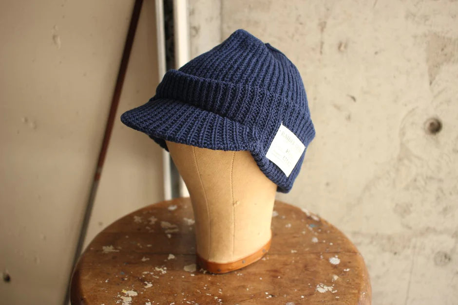 Introducing the COLIMBO / OVERLAND X/C KNIT CAP from コリンボ. Inspired by the classic jeep cap, this knit cap features a small brim and a sturdy structure thanks to its cotton and nylon yarns. The seamless construction allows for versatile styling, making it a must-have for any fashion-forward individual. Try it as an accent to your outfit today.