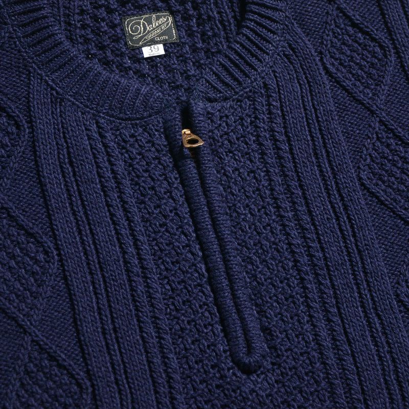 Experience the ultimate comfort and style with DALEE'S & CO Irad. Sweater. Crafted with modern technology, this thick cotton sweater brings back the charm of hand-knitted 1940s alpaca sweaters. Embrace the unique patterns, thickness, and texture as we present a one-of-a-kind half-zip sweater. Add it to your collection and elevate your style this year.