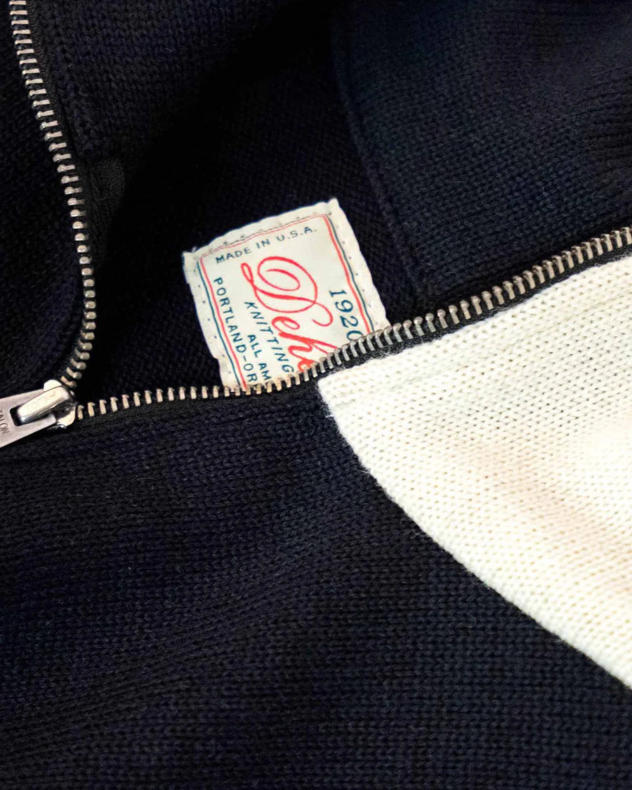 - 100% worsted wool, knit by us on 1940's knitting machines