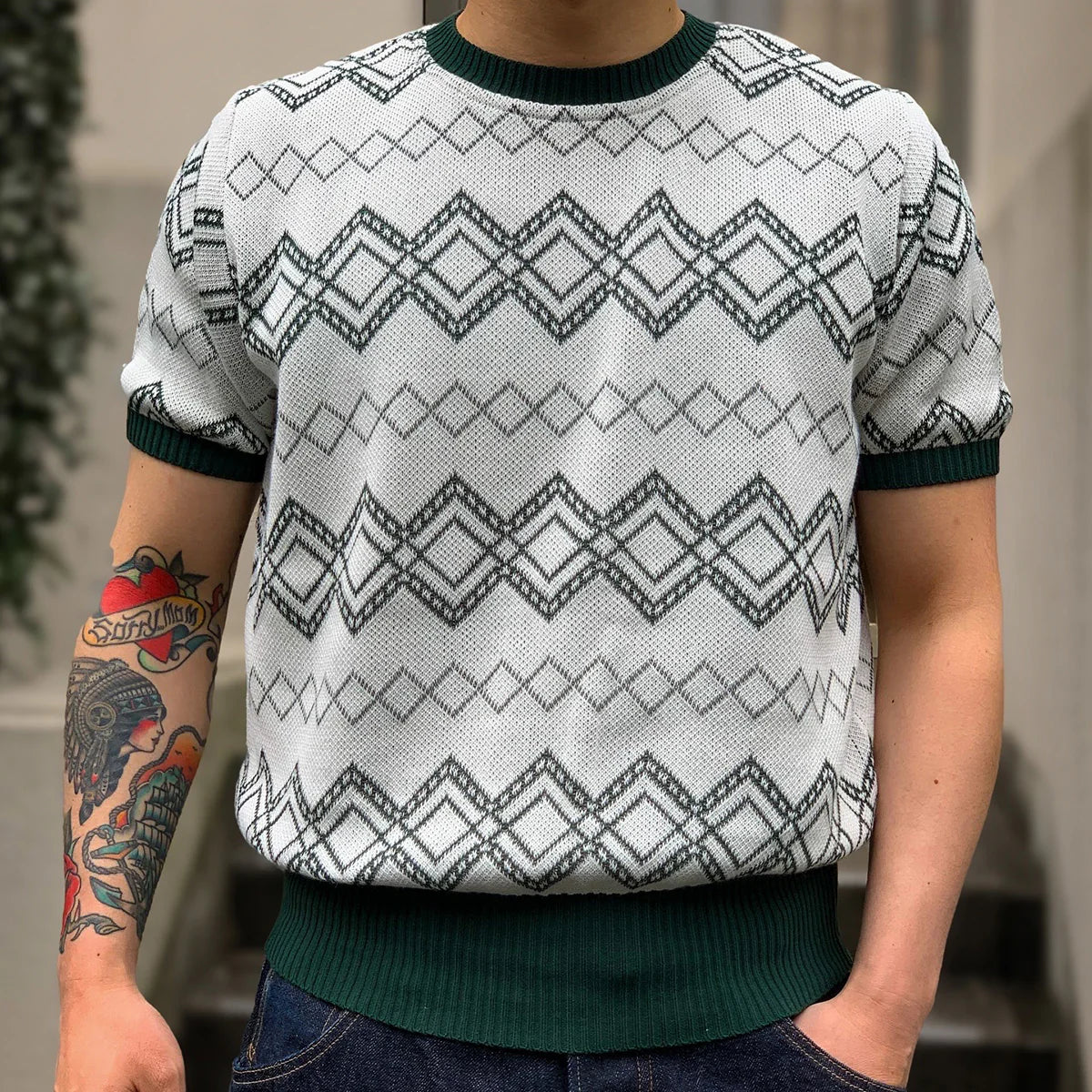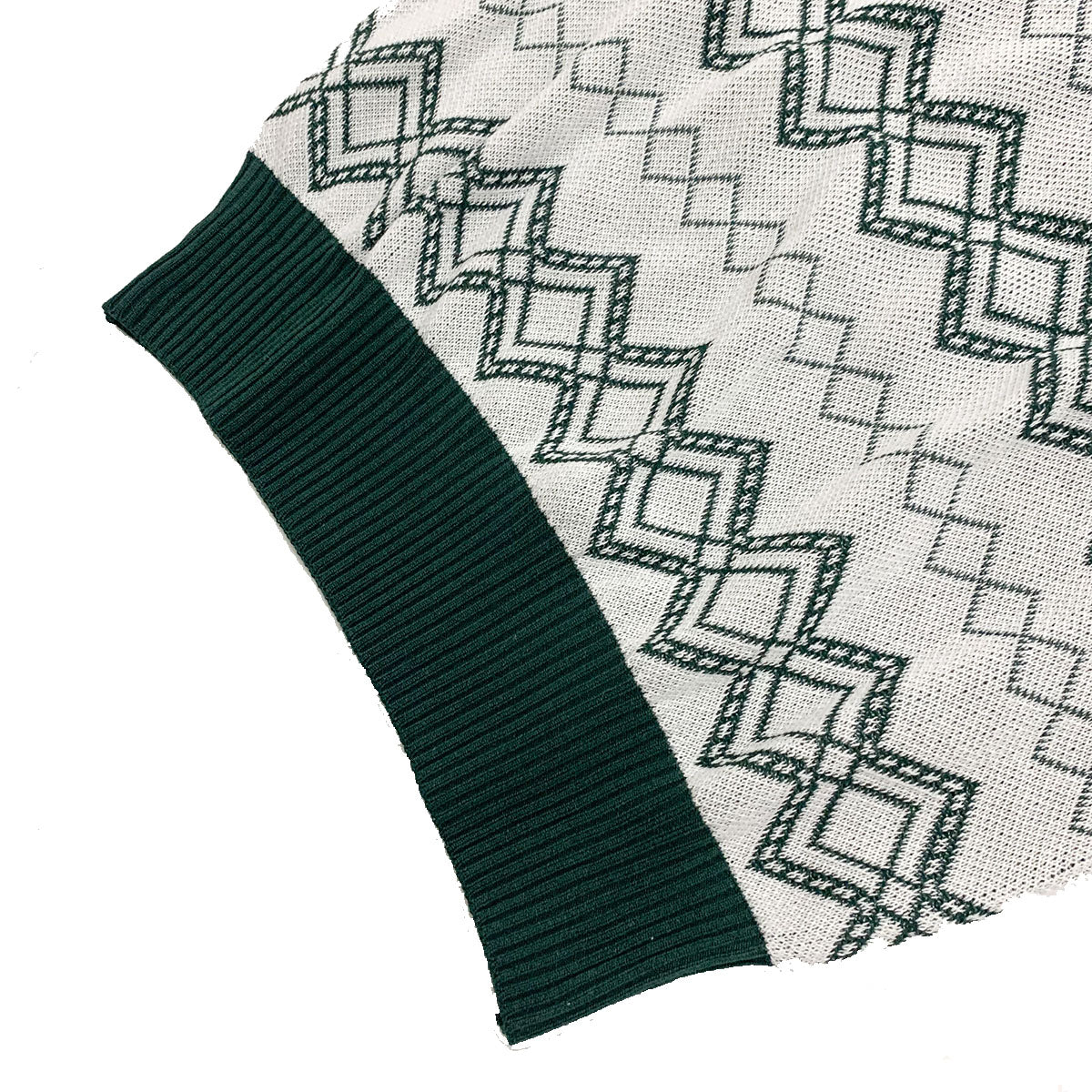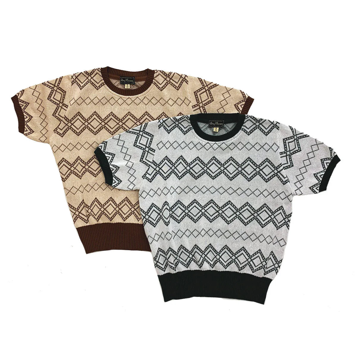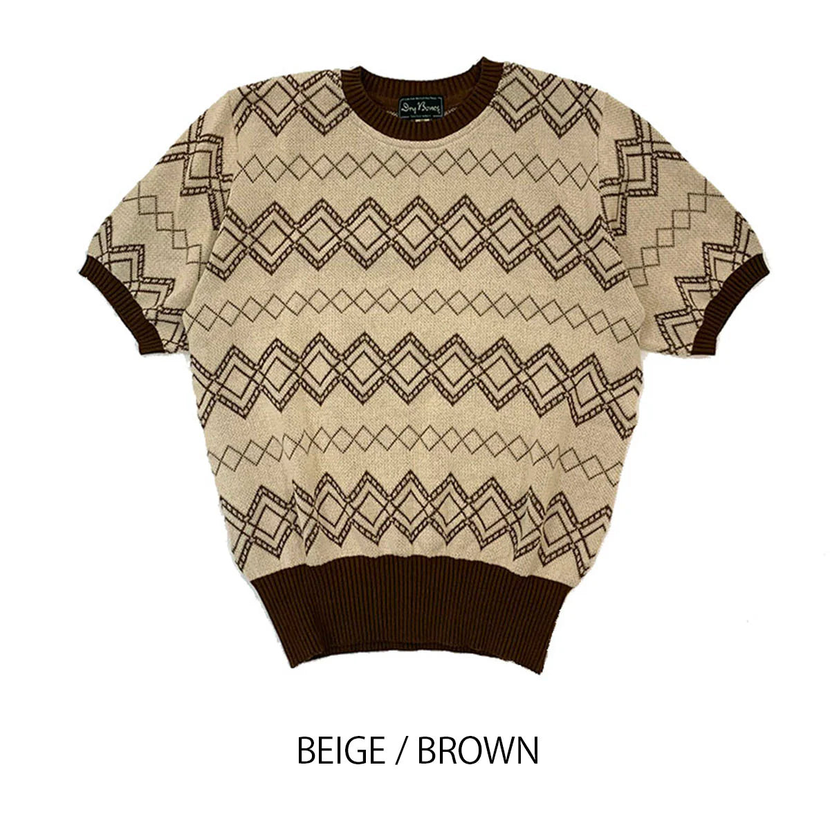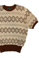 Inspired by 1940s and 1950s summer sweaters, this knit features a delicate jacquard diamond pattern crafted from 40-count cotton. Produced in a renowned Tokyo factory, its continuous knit fabric showcases a classic mid-century design with a pale background and subtle monochrome hues, ensuring versatile styling. The deliberately wide, high-tension ribbing at the hem offers a snug fit that accentuates the authentic vintage silhouette. Ideal for casual summer wear, this piece combines historical craftsmanship with refined simplicity.